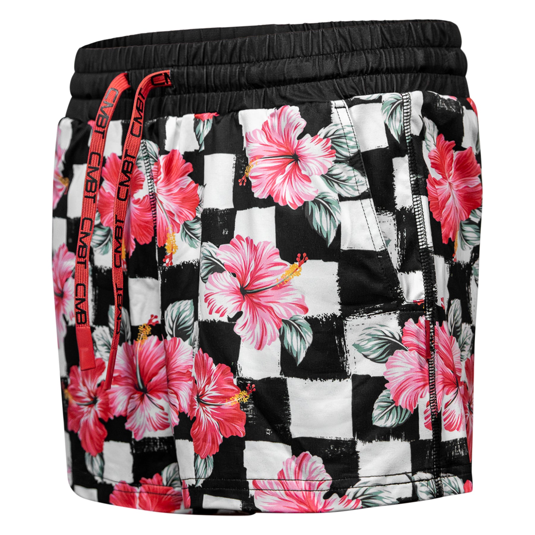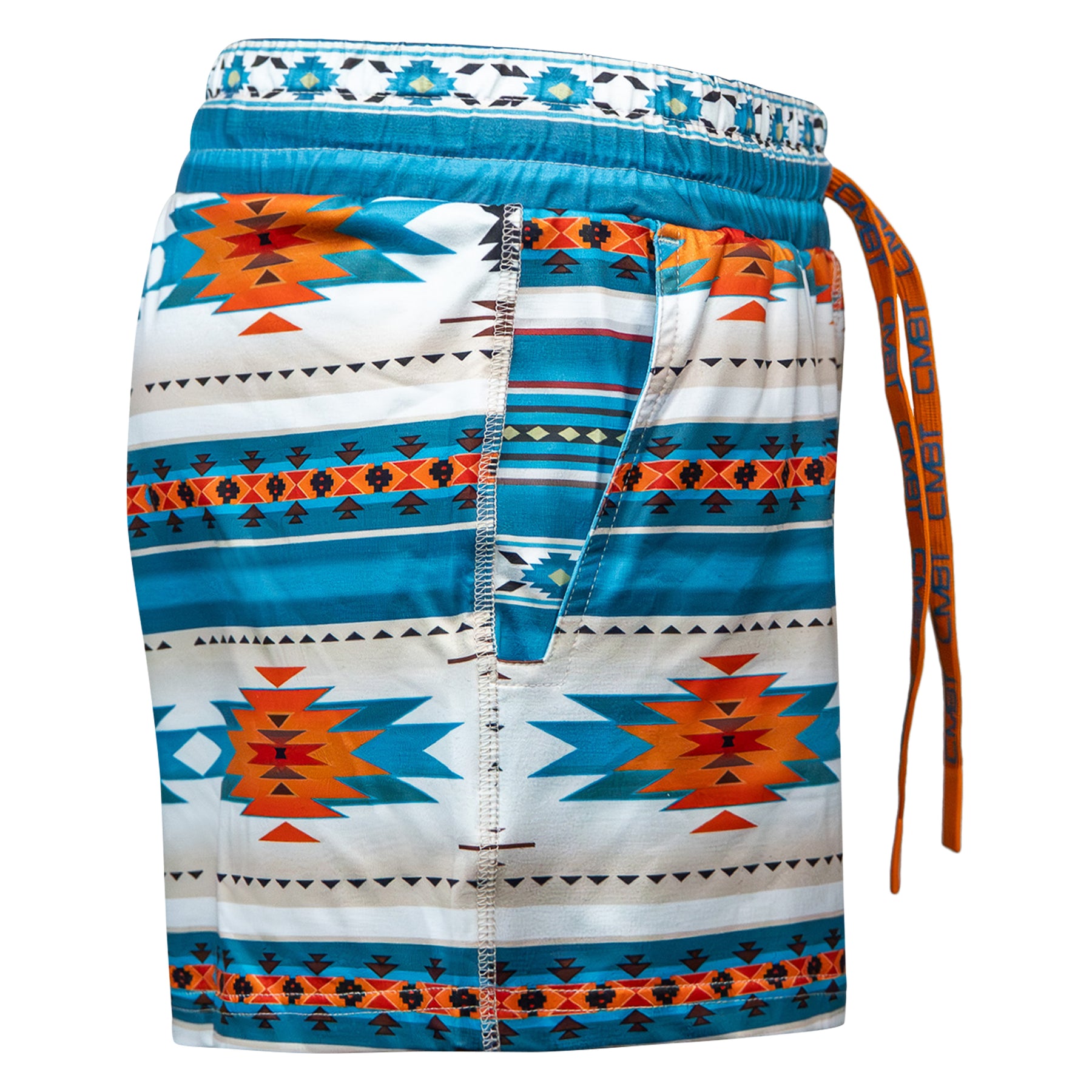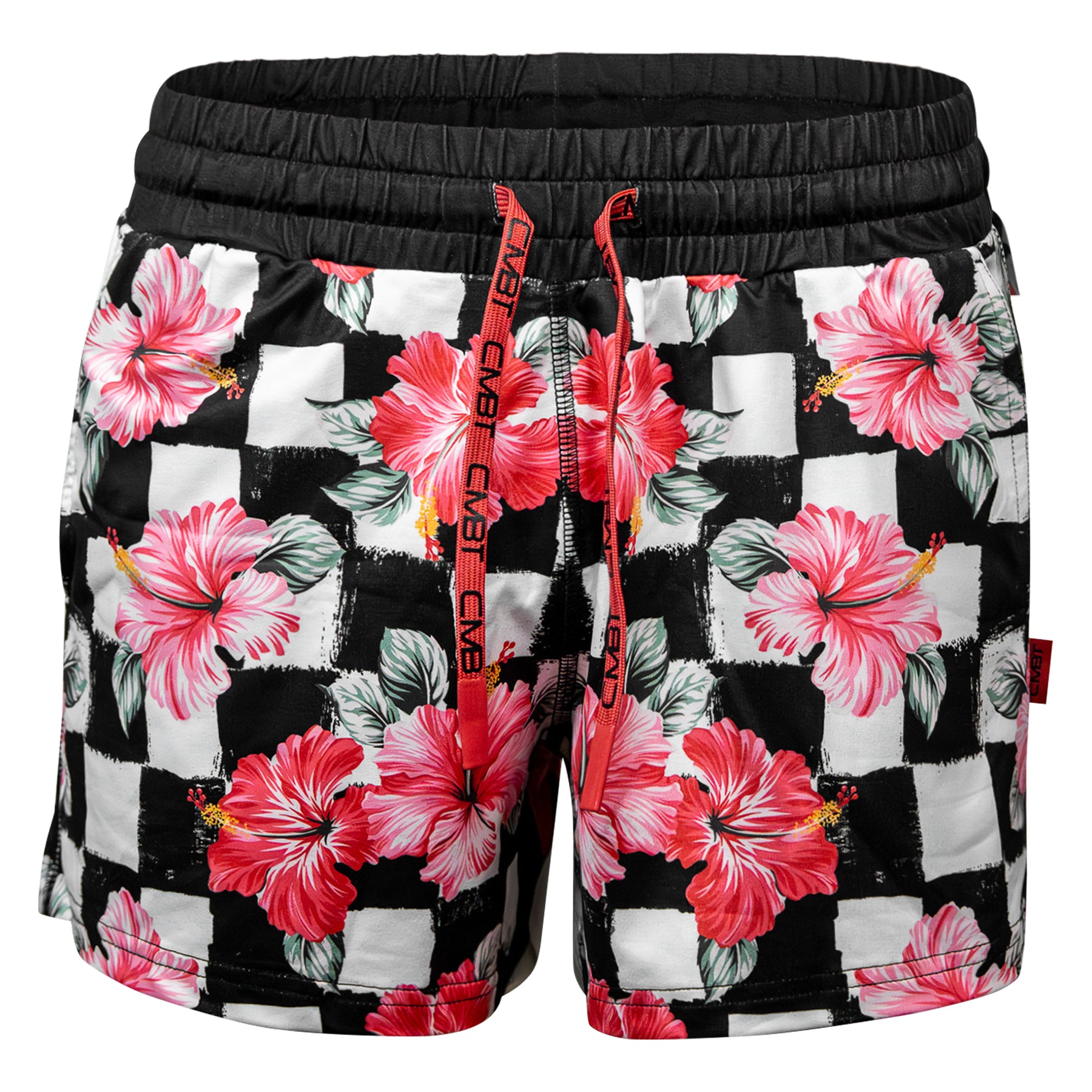 Two deep front pockets with an internal water-release ports, secure waistband, and front drawstring.