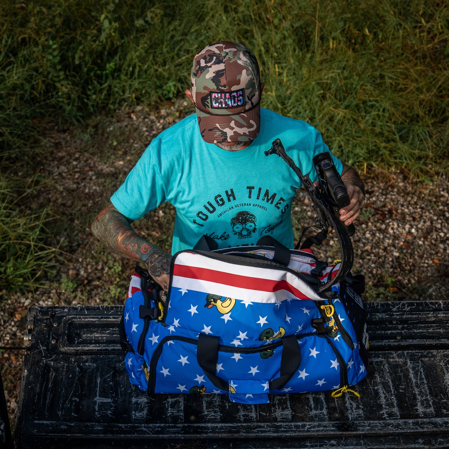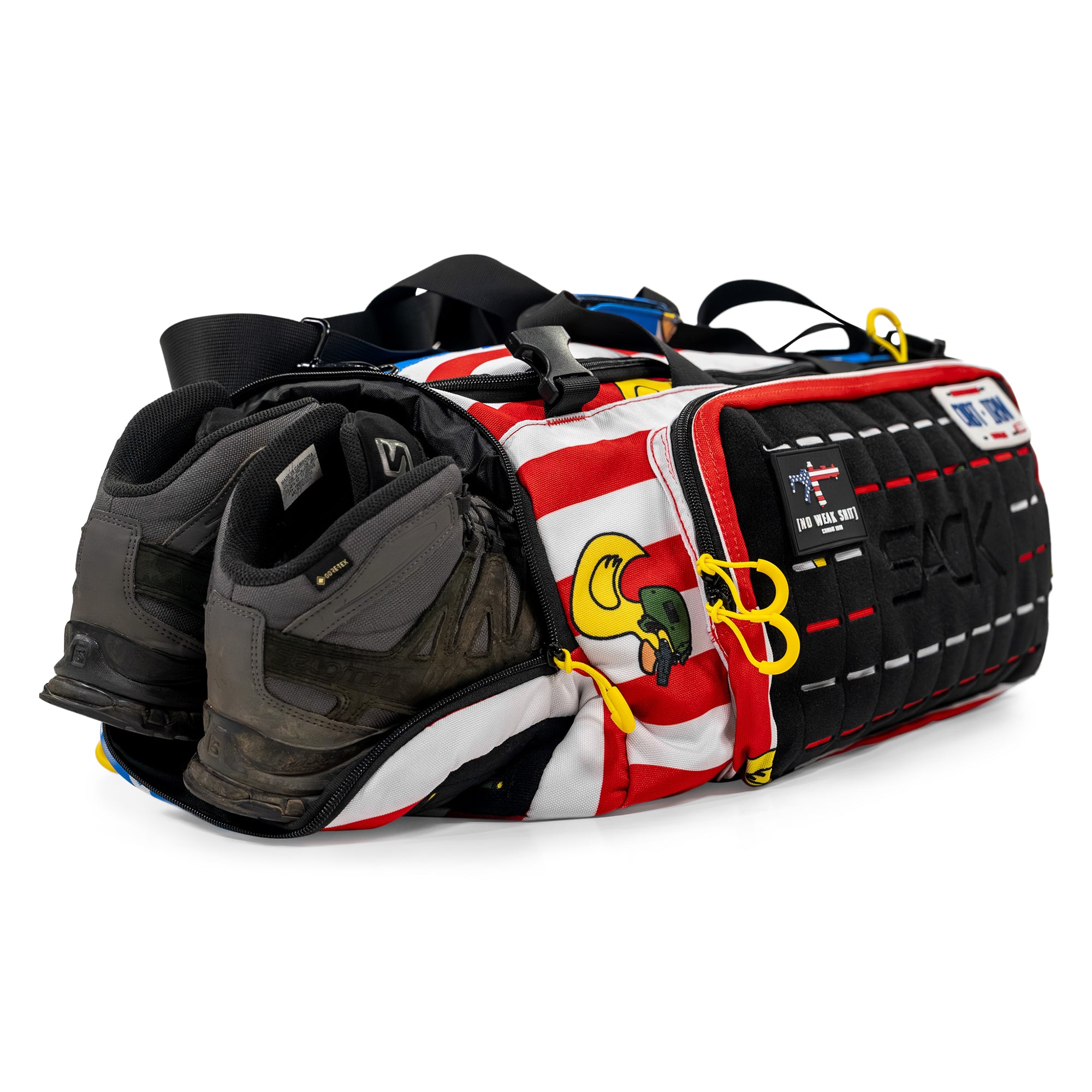 Waterproof-lined and vented to keep boots, shoes, or wet gear away from clean loadout.