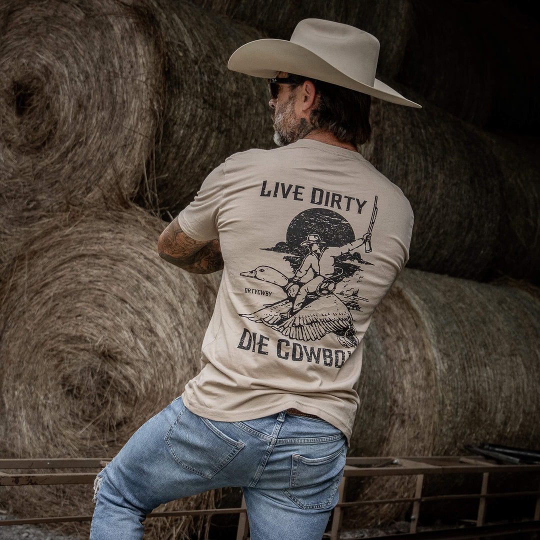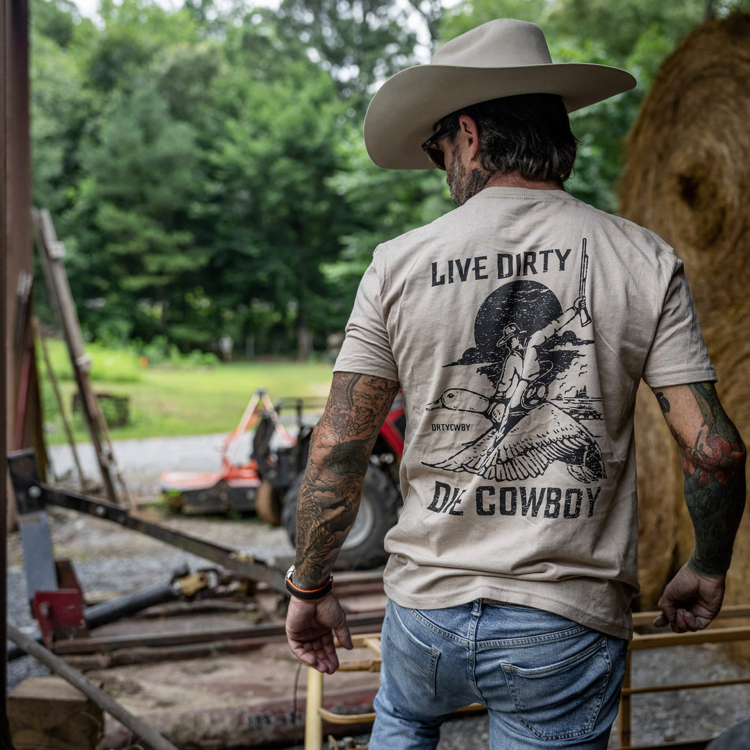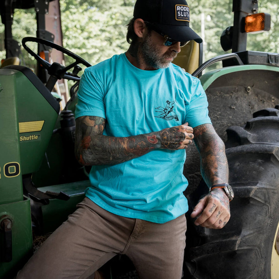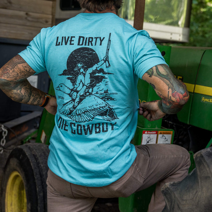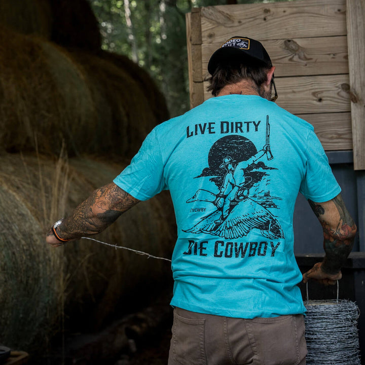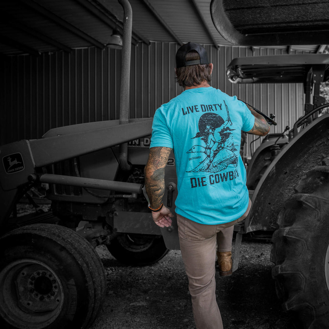 Live Dirty. Die Cowboy Men's T-Shirt - Combat Iron Apparel Co. #color_tahiti-blue