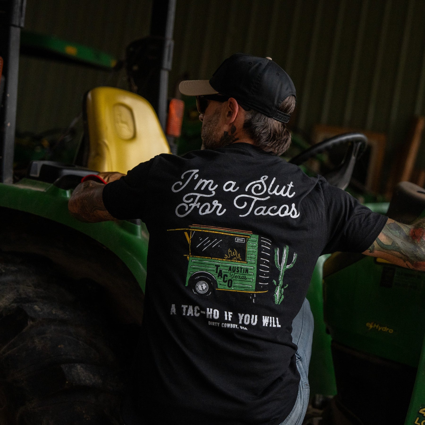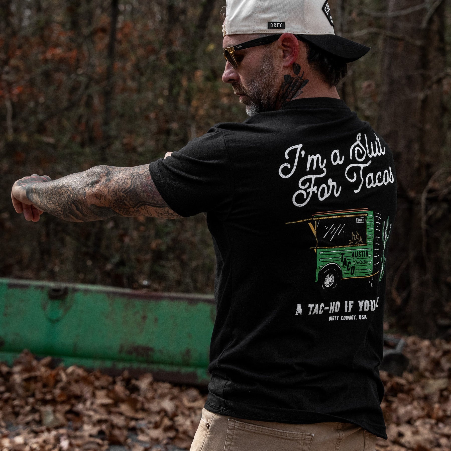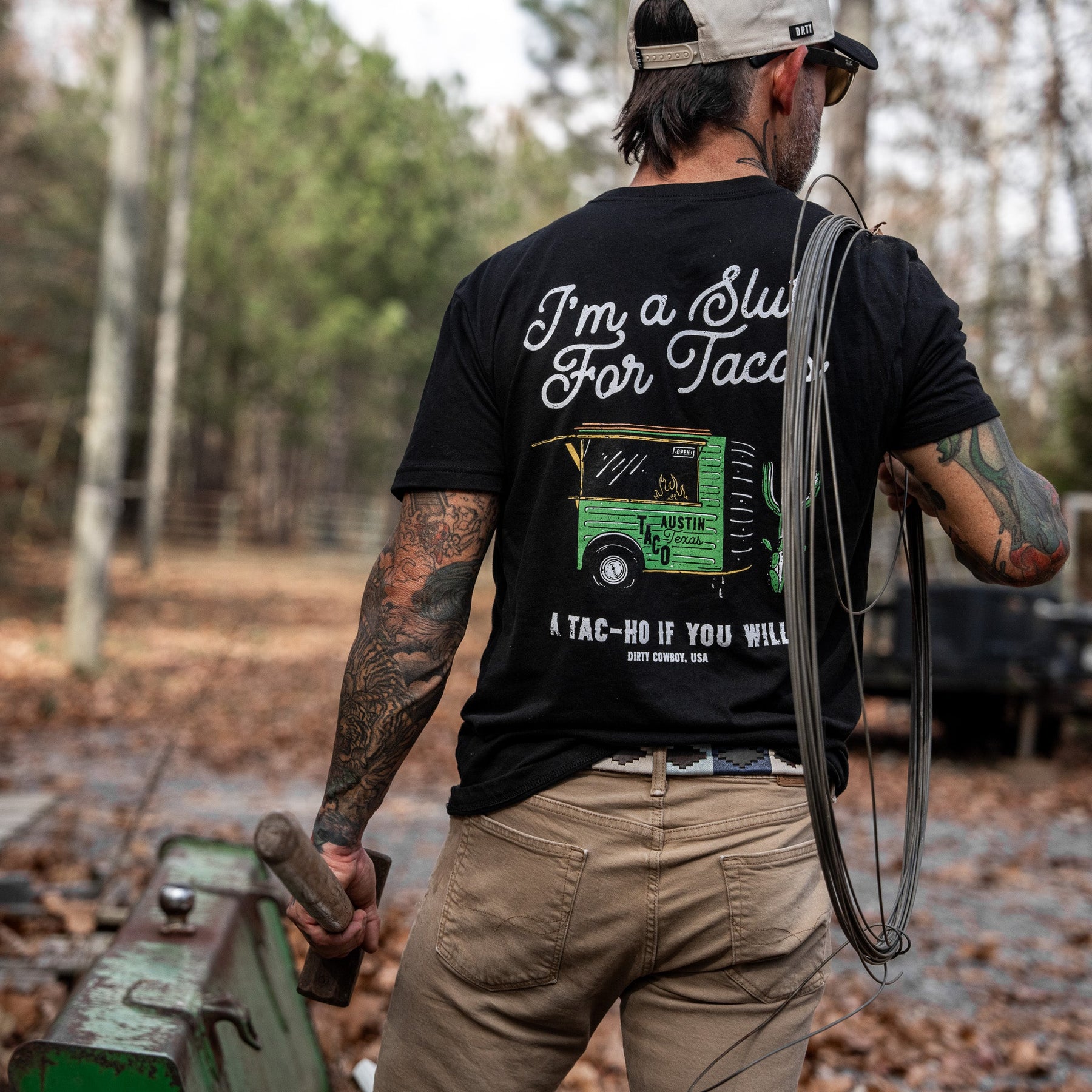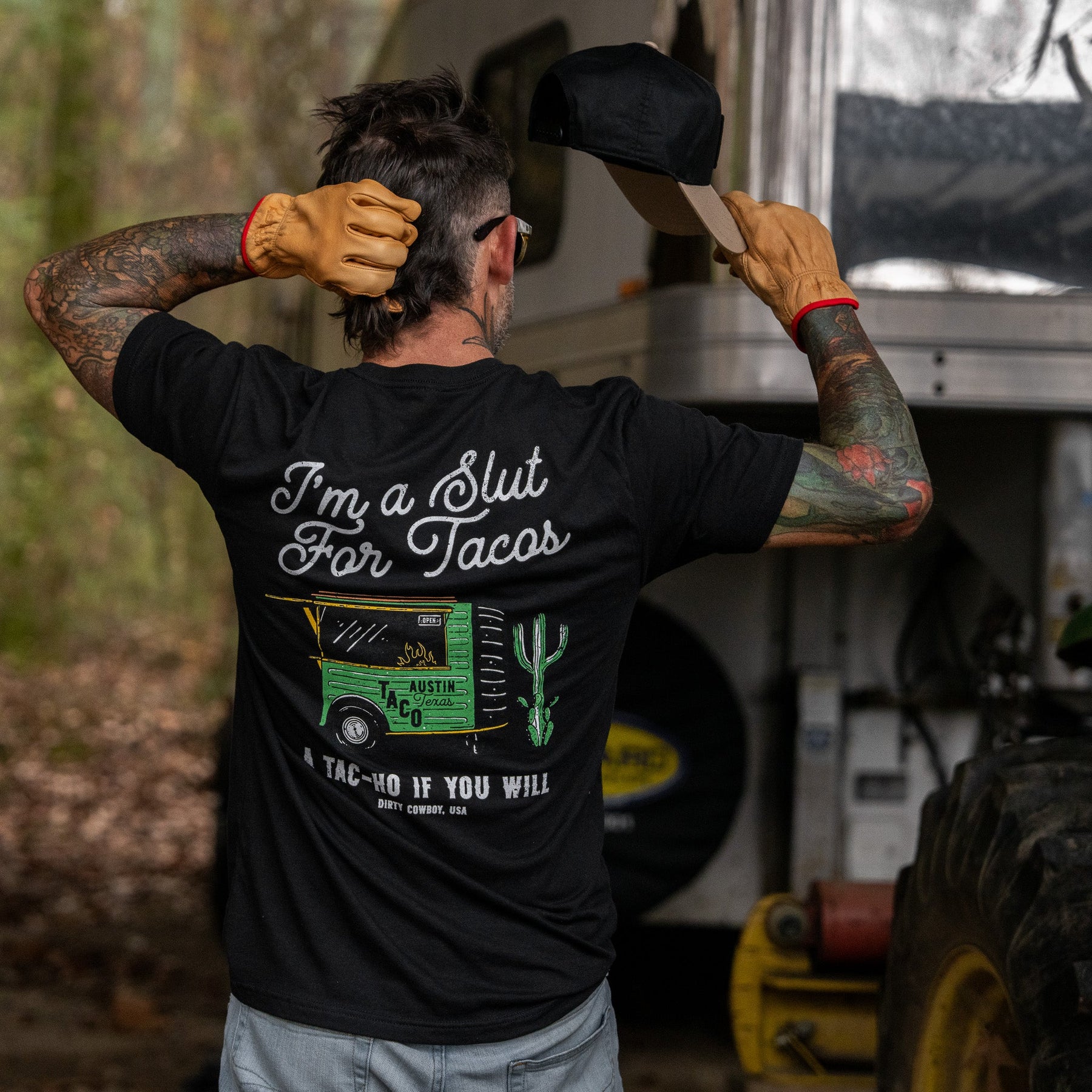 Our tees are made with a 60/40 cotton-poly blend — soft enough to feel broken-in from day one, but tough enough to stand up to real life.