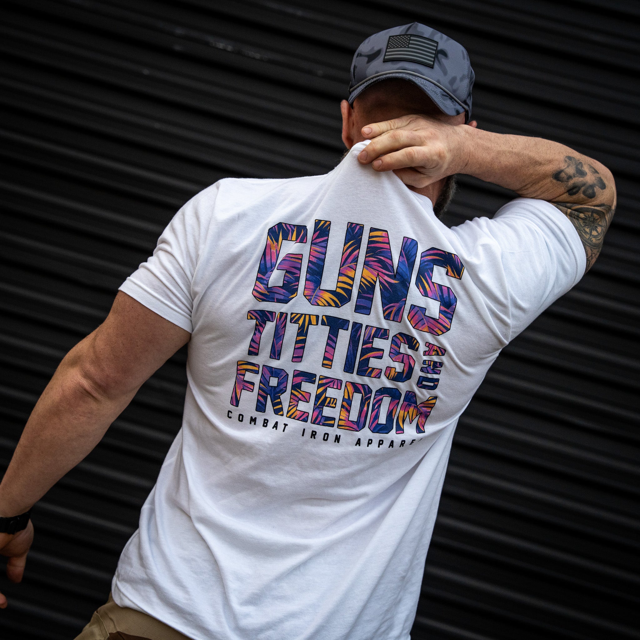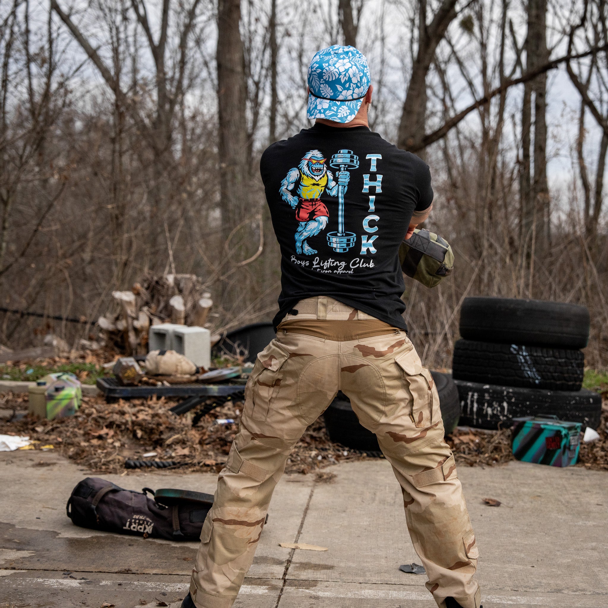 Our tees are made with a 60/40 cotton-poly blend — soft enough to feel broken-in from day one, but tough enough to stand up to real life.