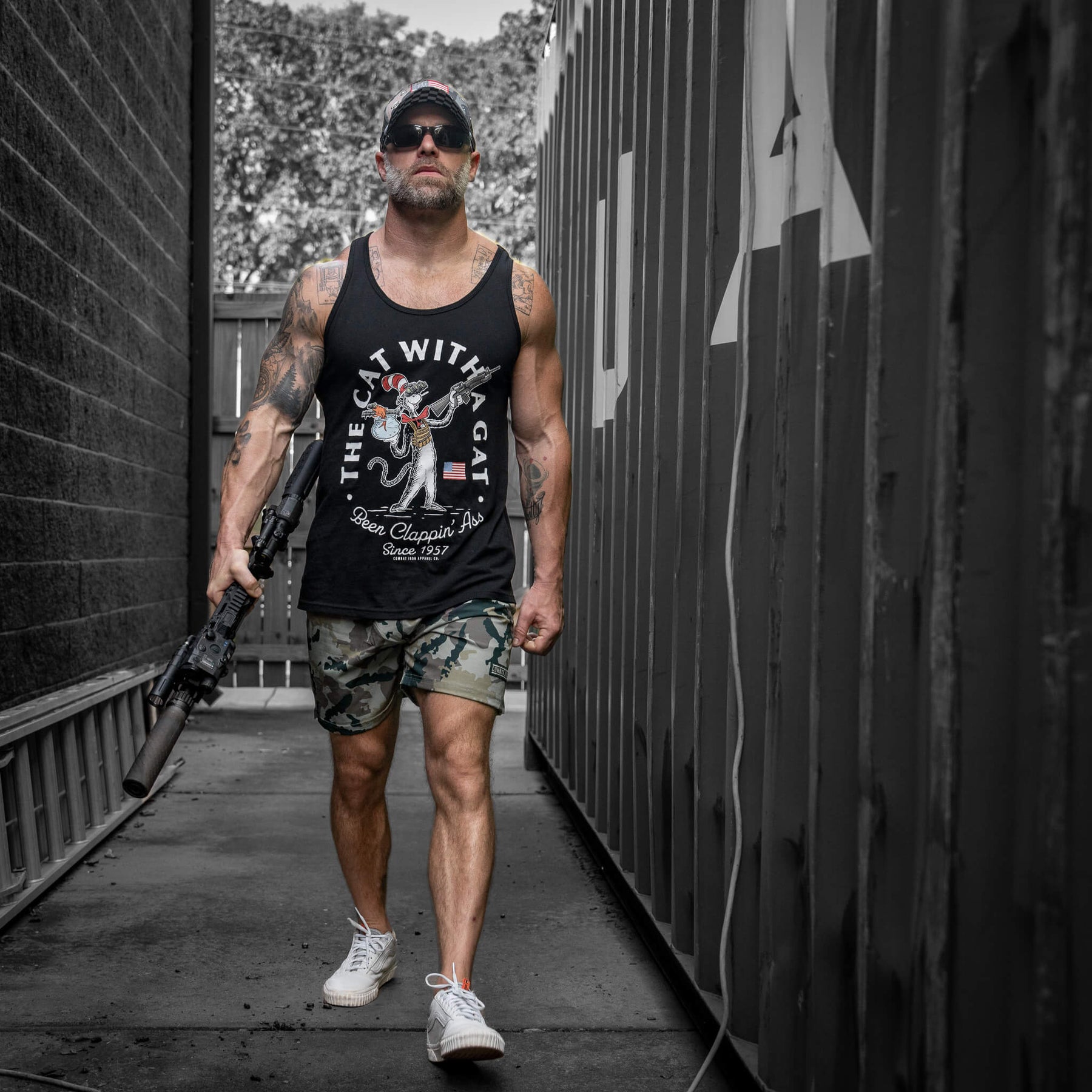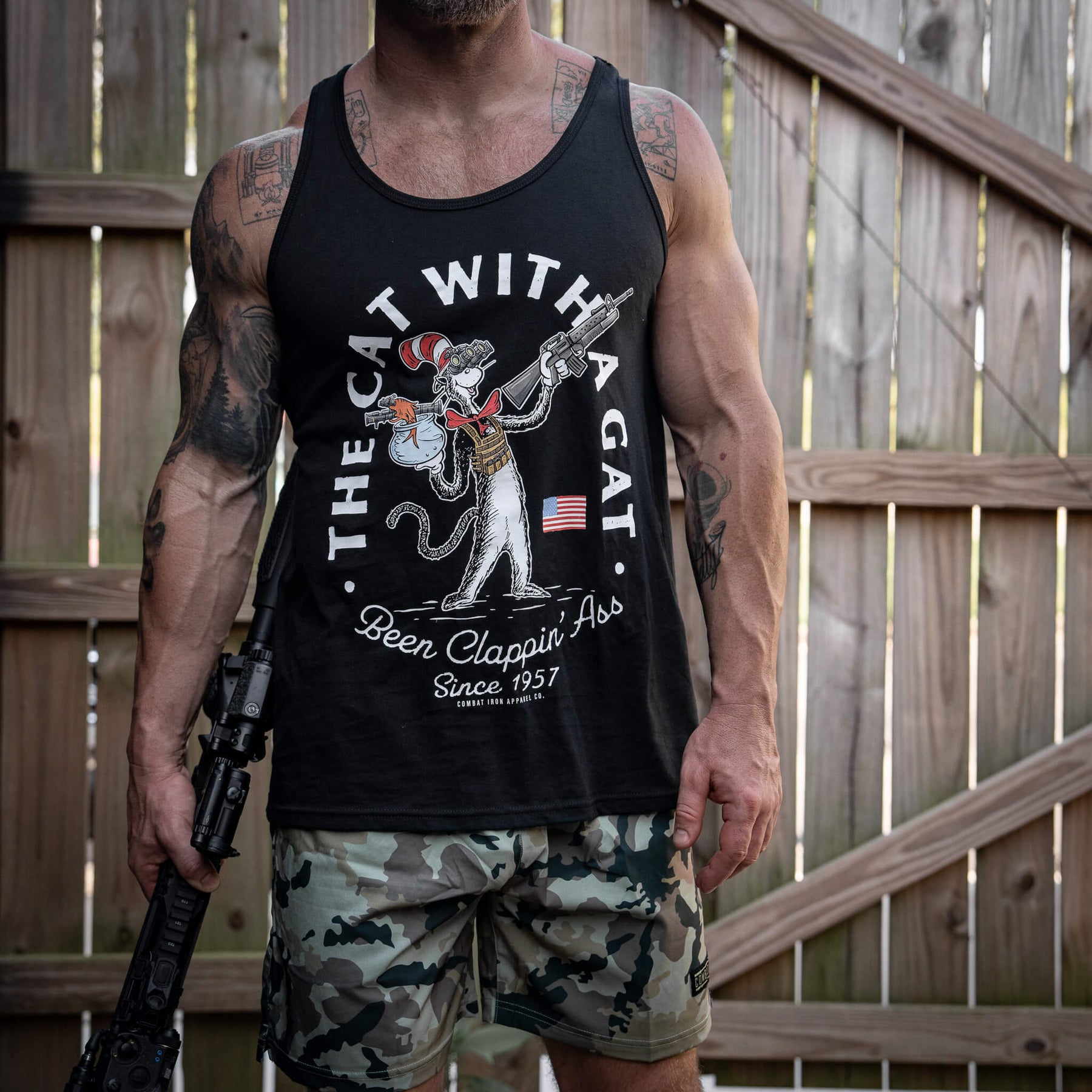 A tank built for real work—training, sweating, and not falling apart. Made from a soft pre-shrunk cotton/poly blend that fits right and stays that way. No-sag collar means no stretched-out necklines. Lightweight print that won’t crack, peel, or stick to your skin. No drama. Just a solid, dependable tank—because your gear should work as hard as you do.