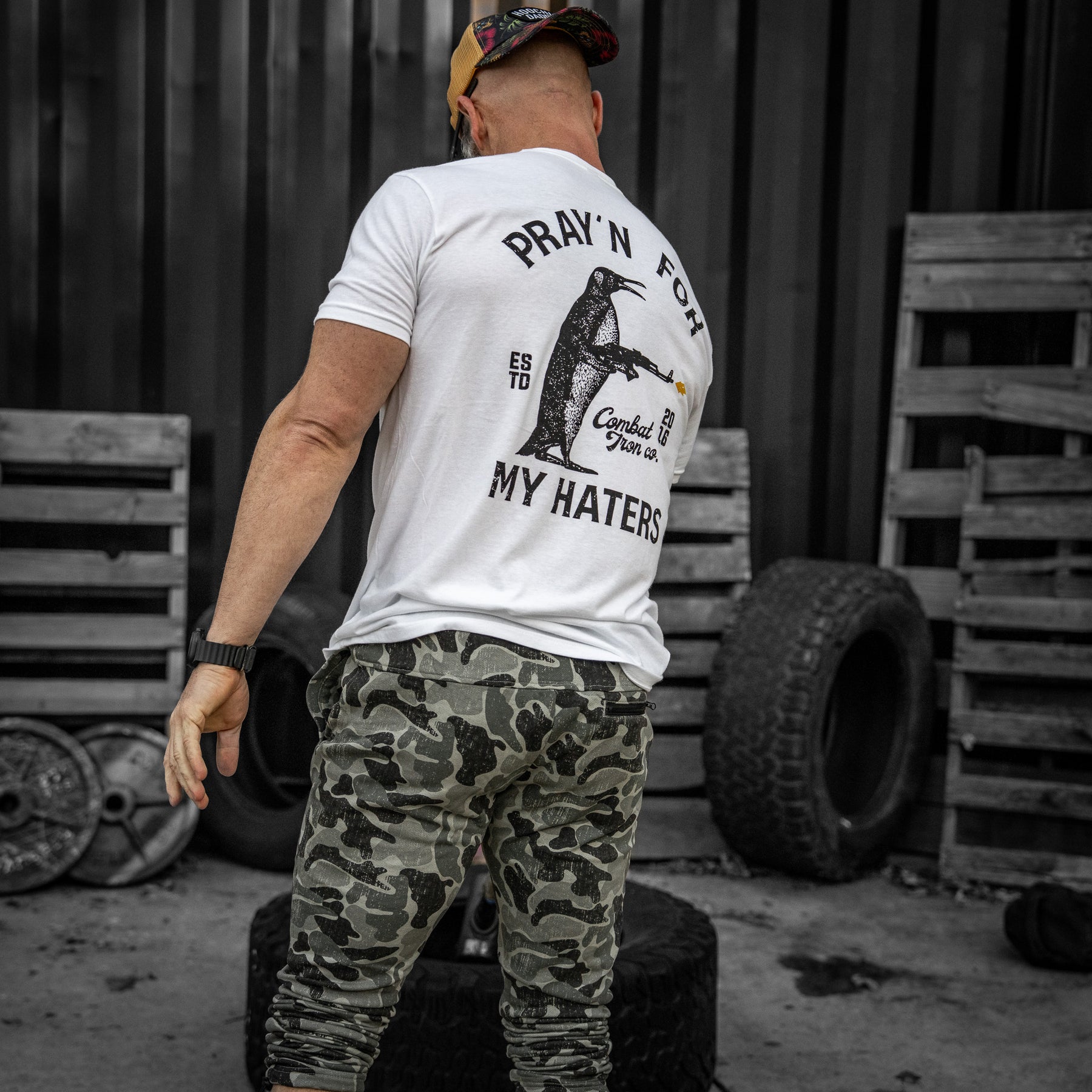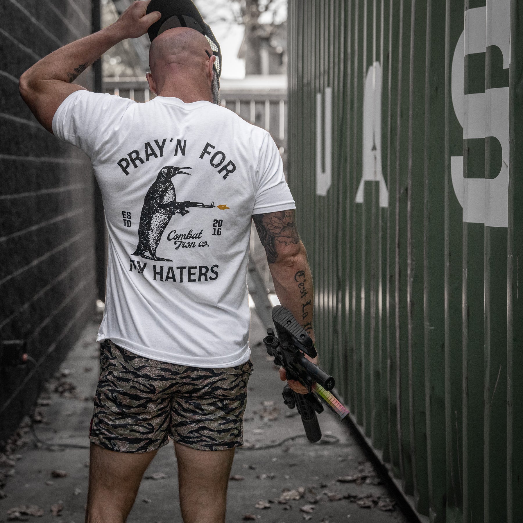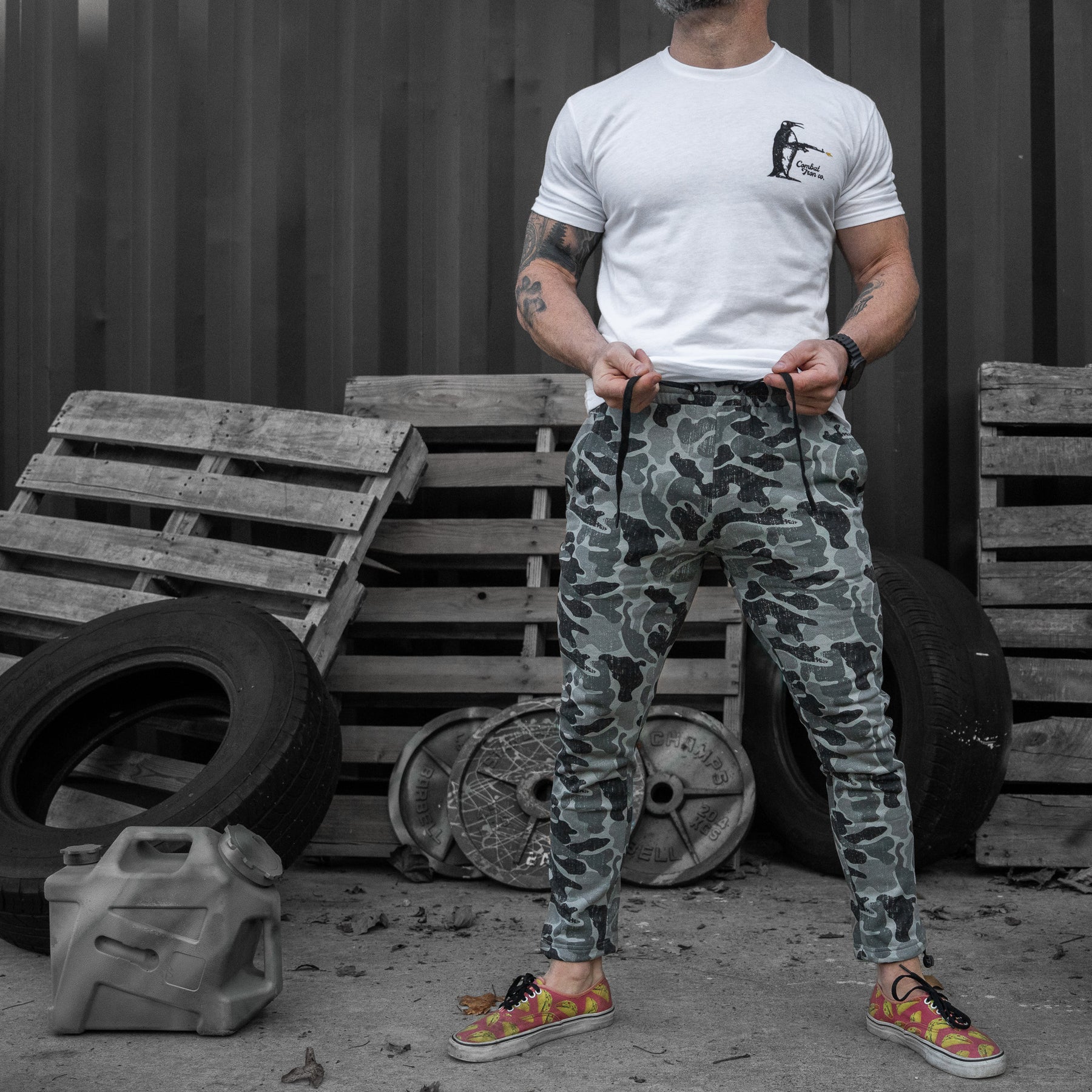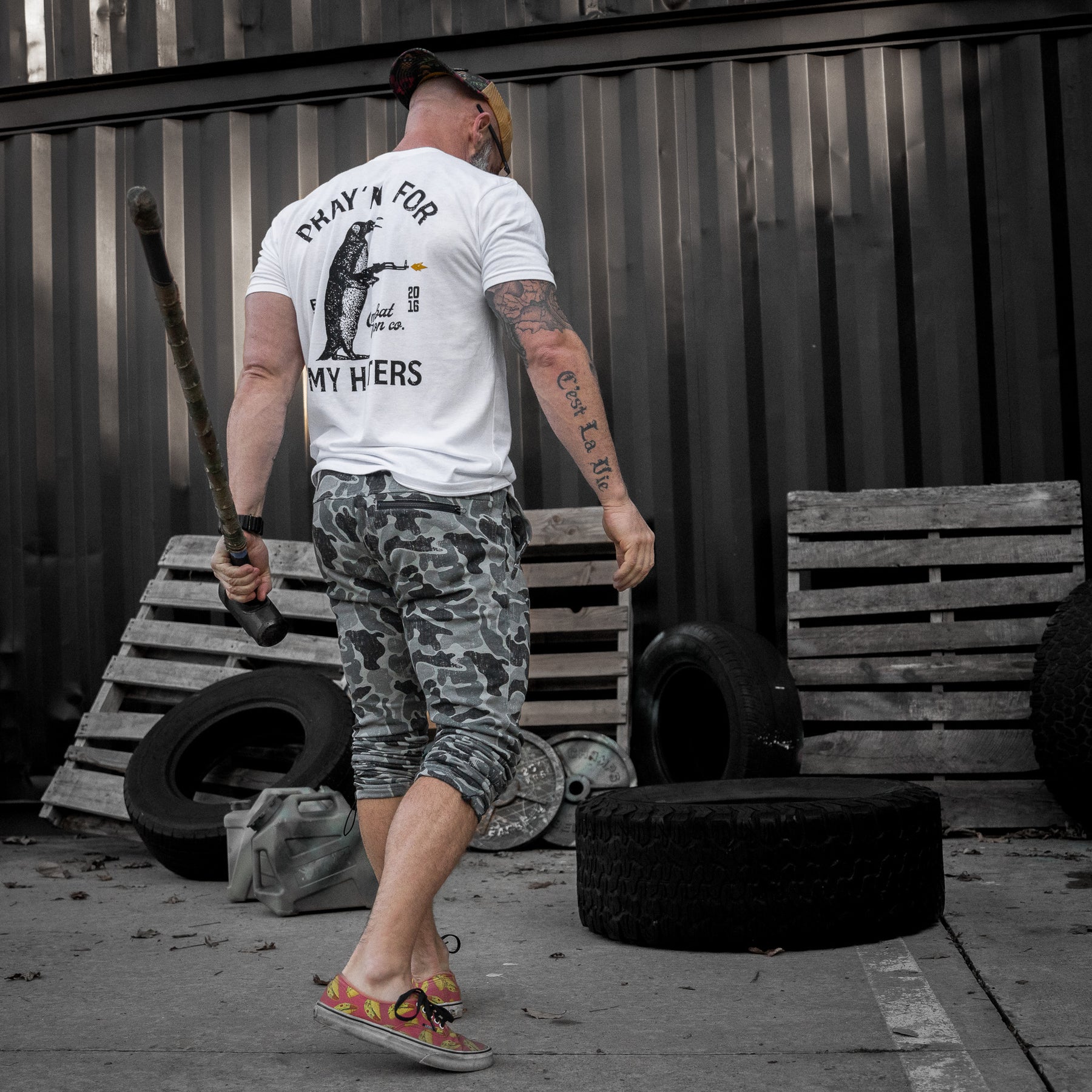 Our tees are made with a 60/40 cotton-poly blend — soft enough to feel broken-in from day one, but tough enough to stand up to real life.
