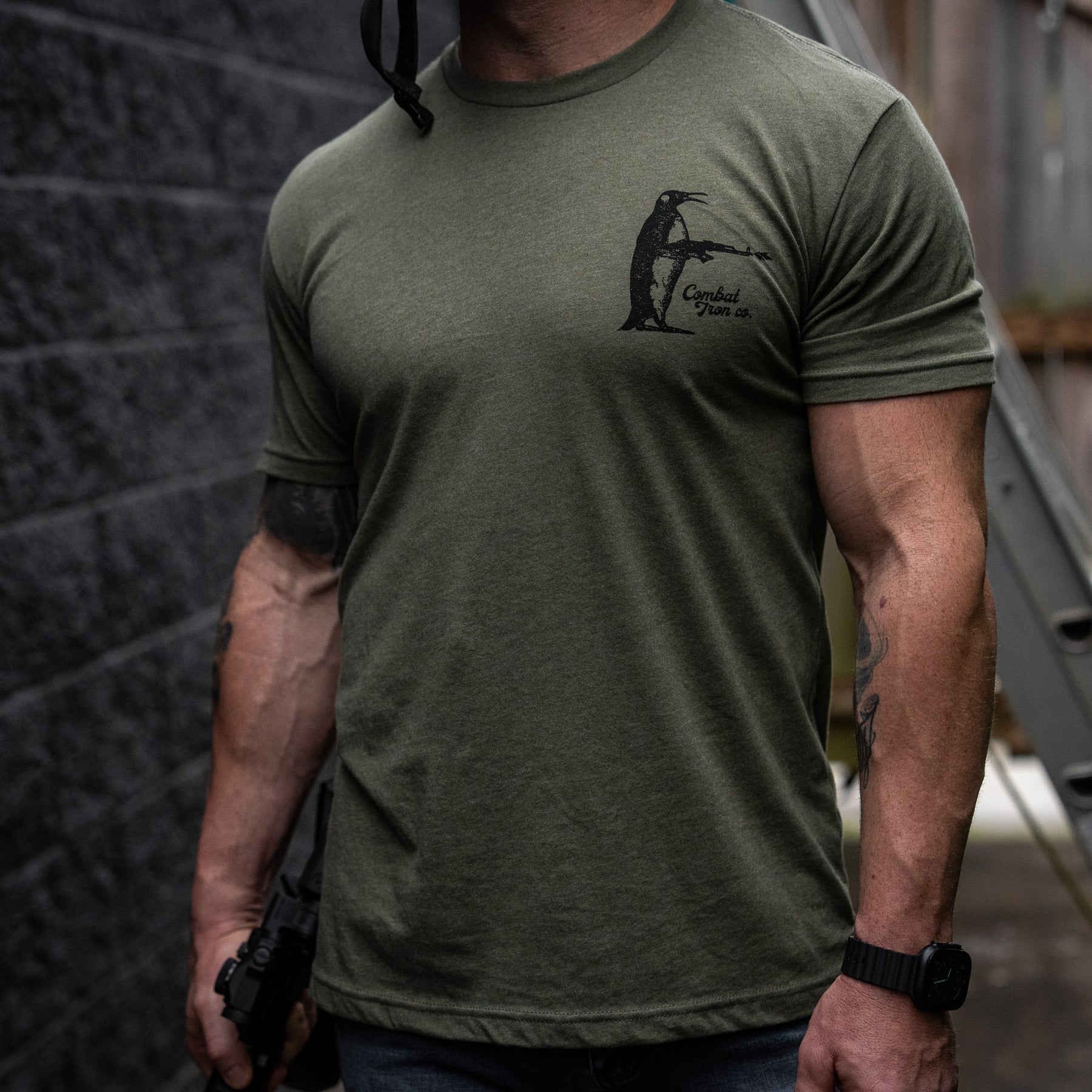 Your upgraded modern go-to tee for training, operating, traveling, and everything in between. Engineered from a soft spun pre-laundered 60/40 cotton-poly blend, this shirt delivers a broken-in feel from day one and keeps its athletic shape wear after wear.