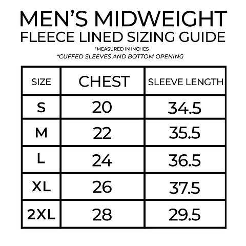 MEN'S MIDWEIGHT FLEECE LINED HOODIE SIZING CHART