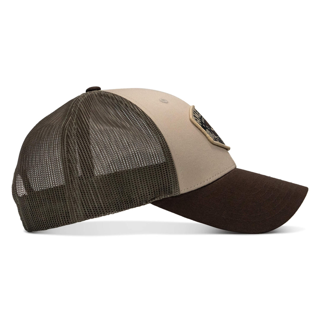 A pre-curved visor maintains shape from the first wear. The adjustable snapback closure locks in a secure fit, and reinforced stitching delivers lasting durability. Each hat is finished with in-house, hand sewn patches.