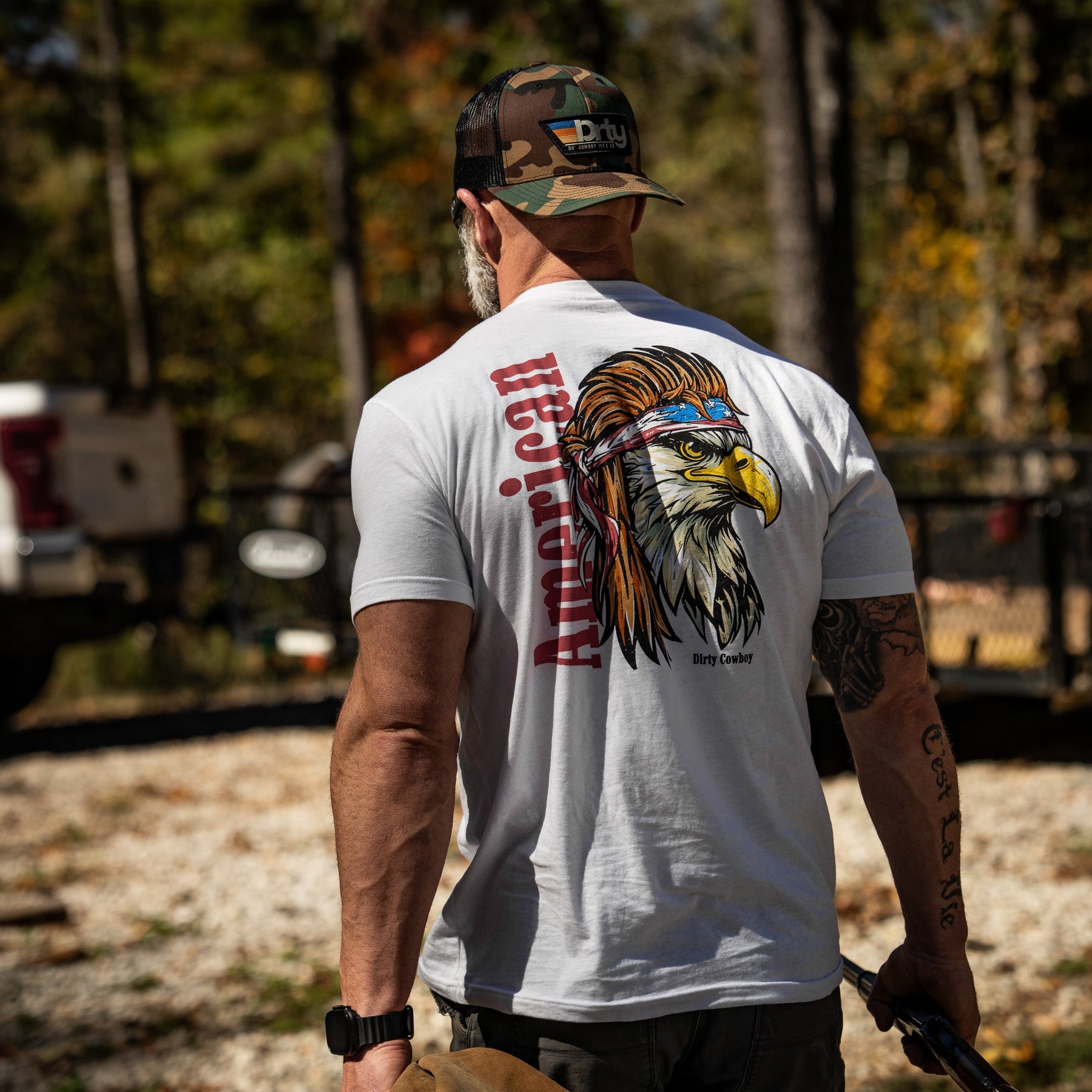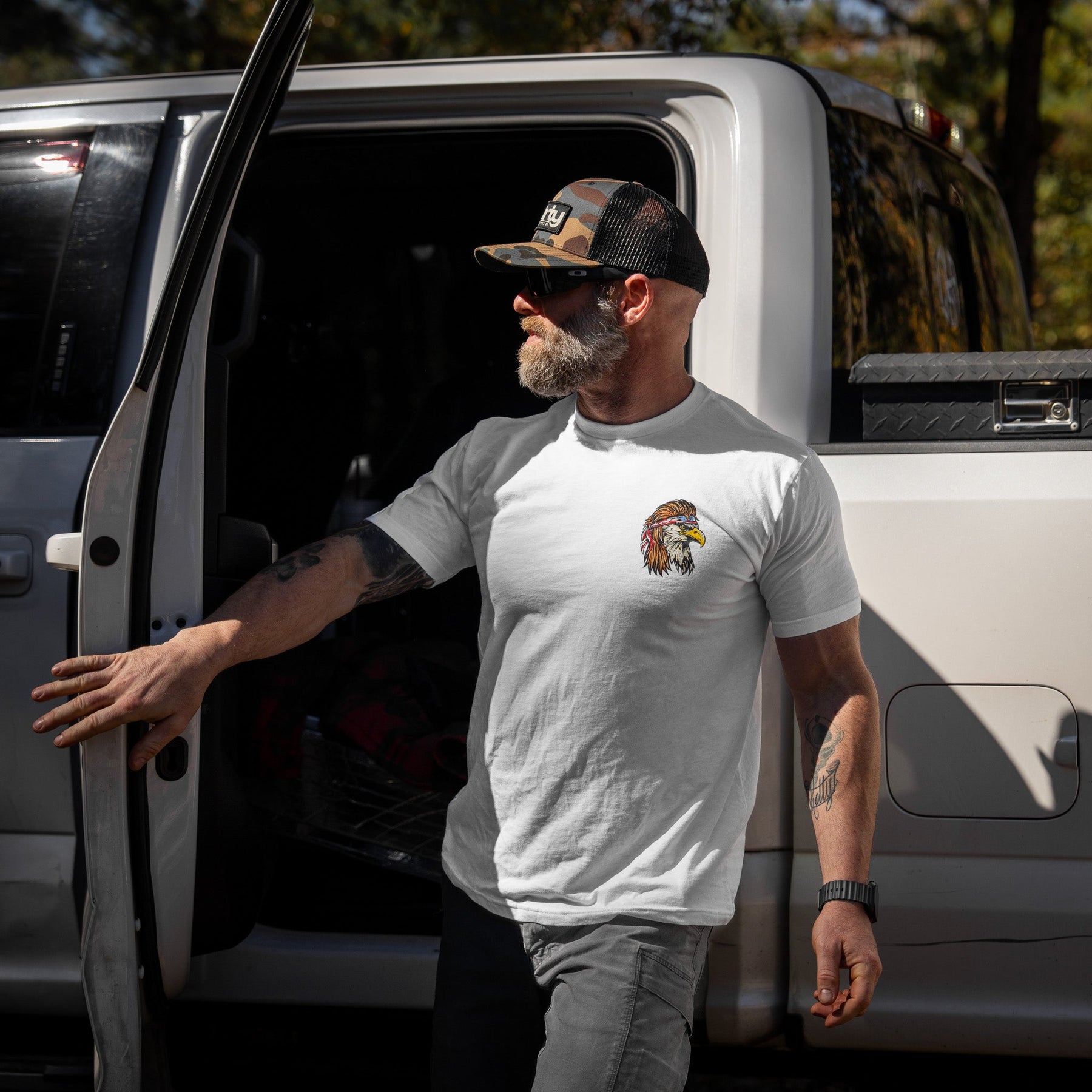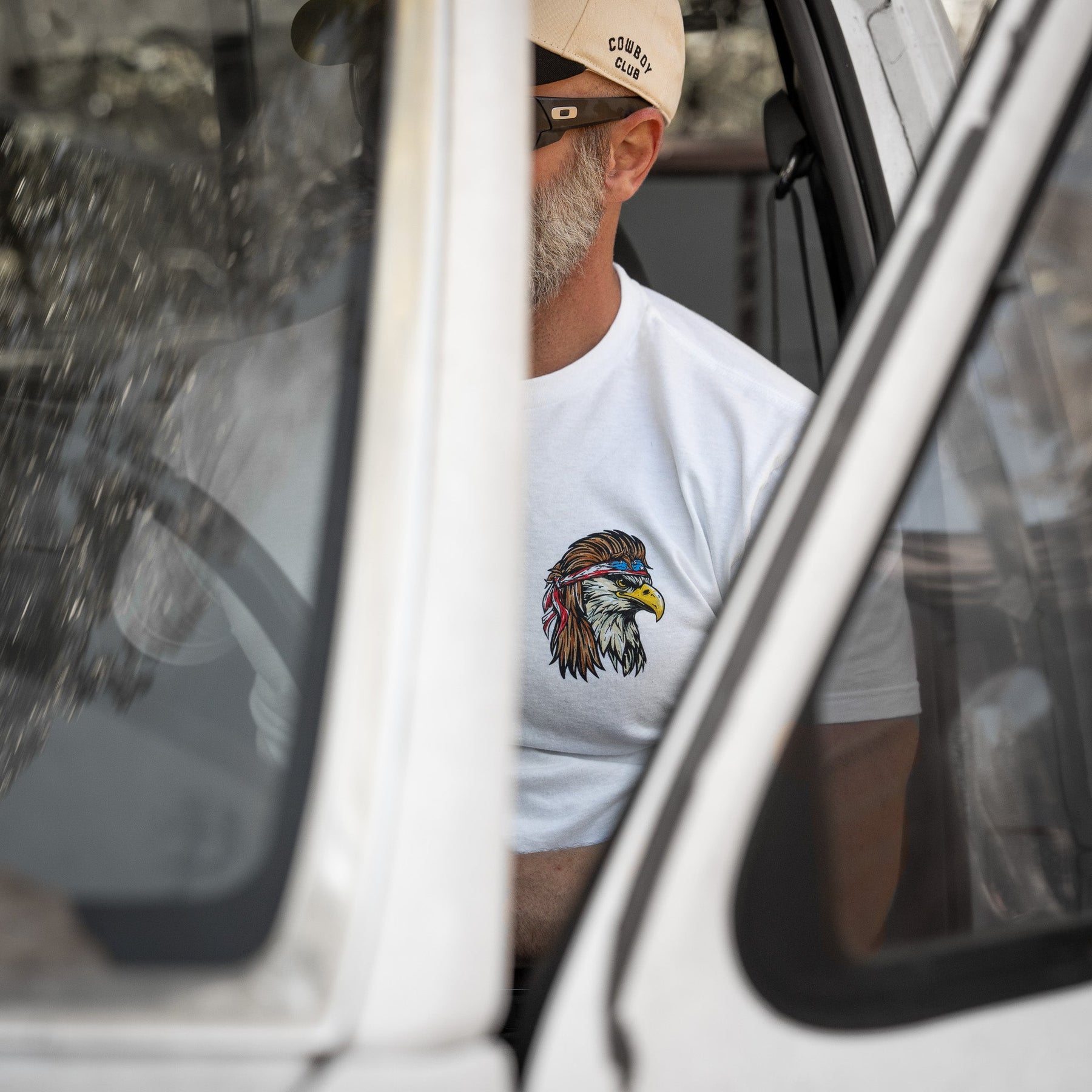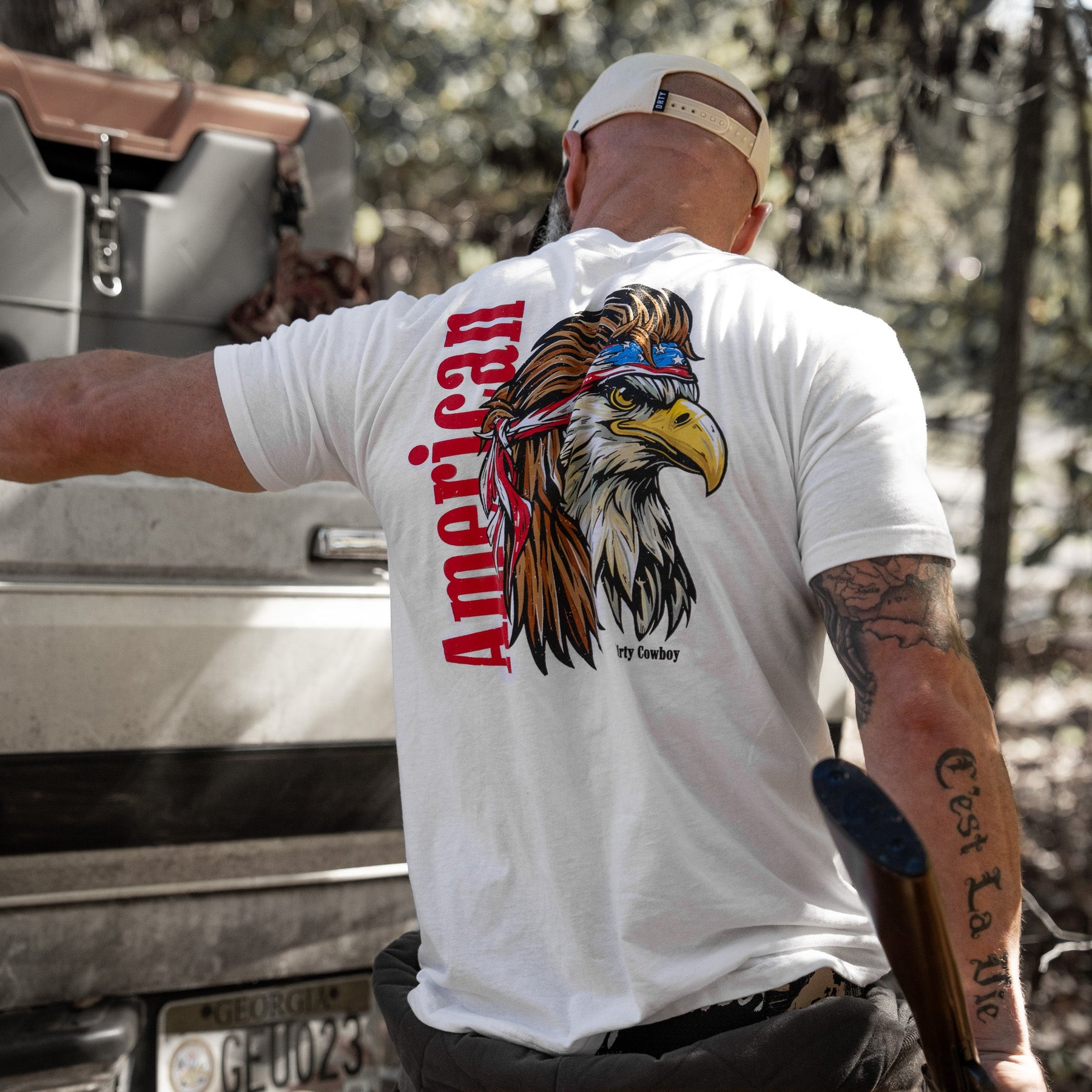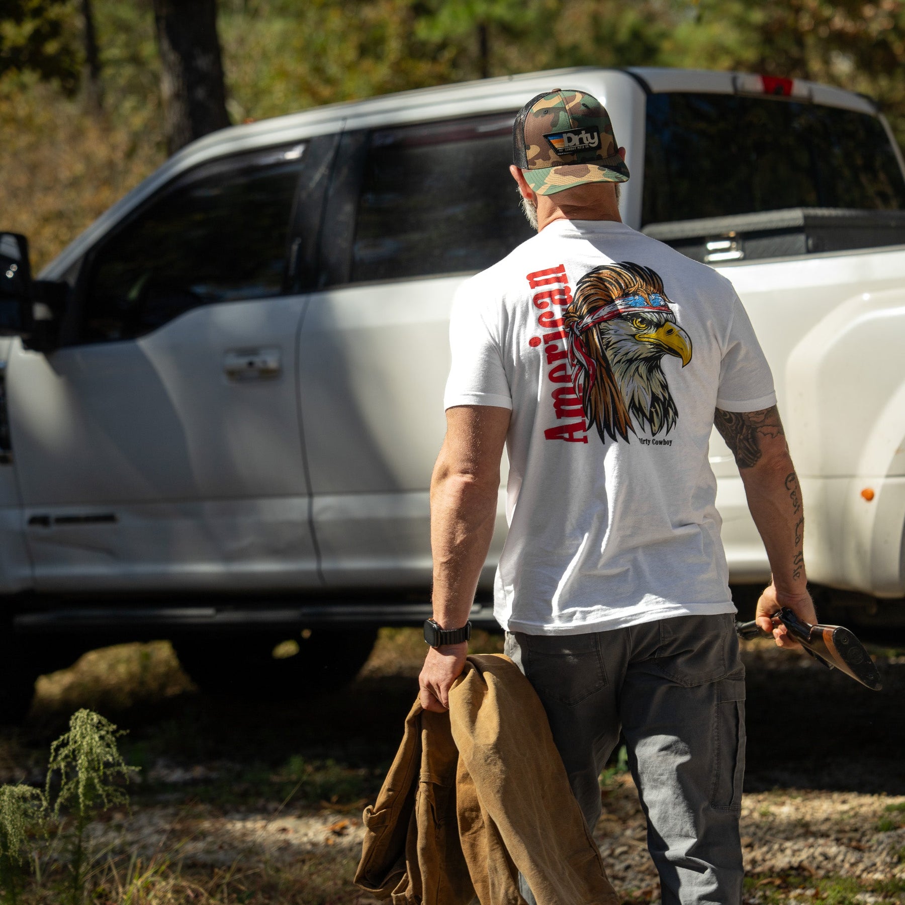 Our tees are made with a 60/40 cotton-poly blend — soft enough to feel broken-in from day one, but tough enough to stand up to real life.