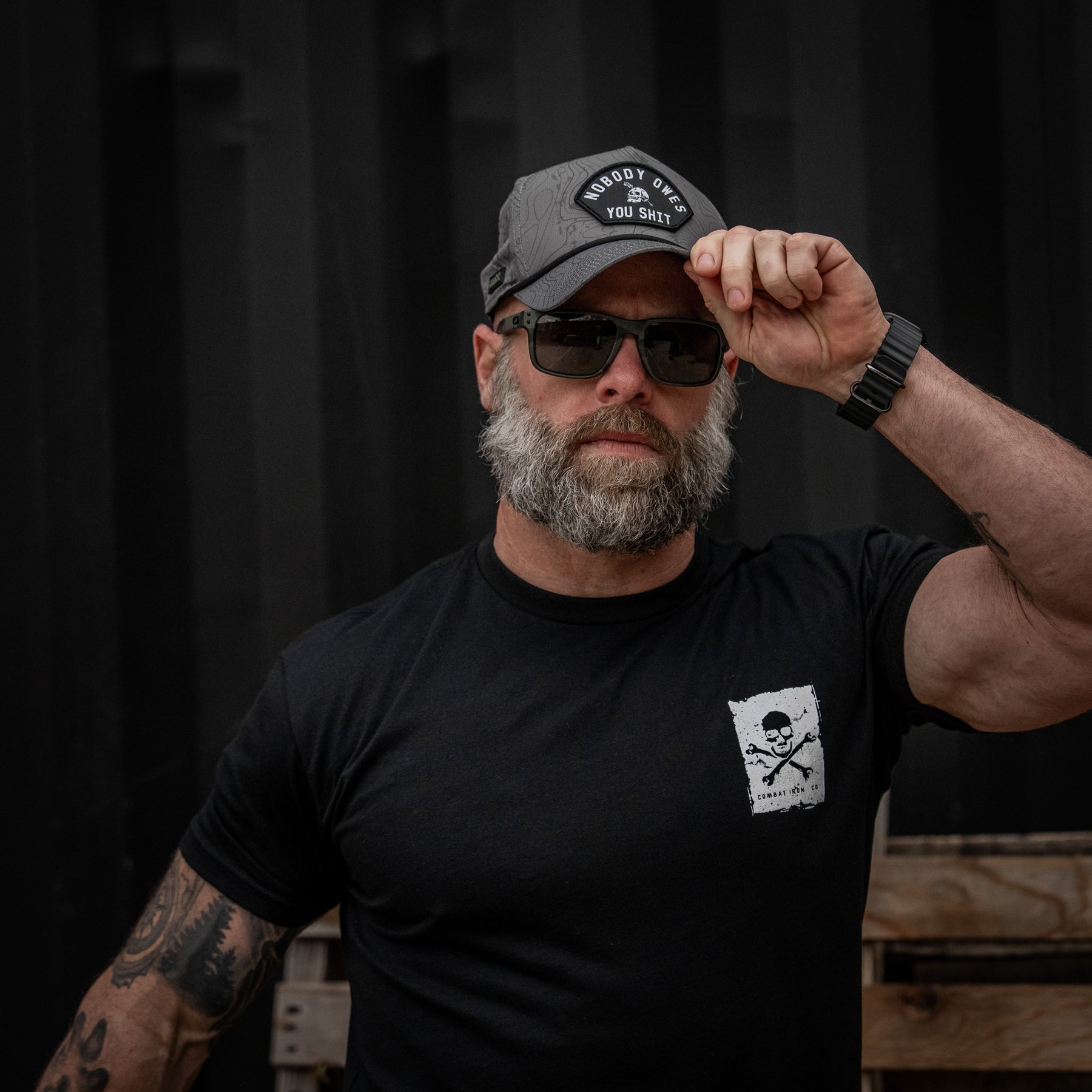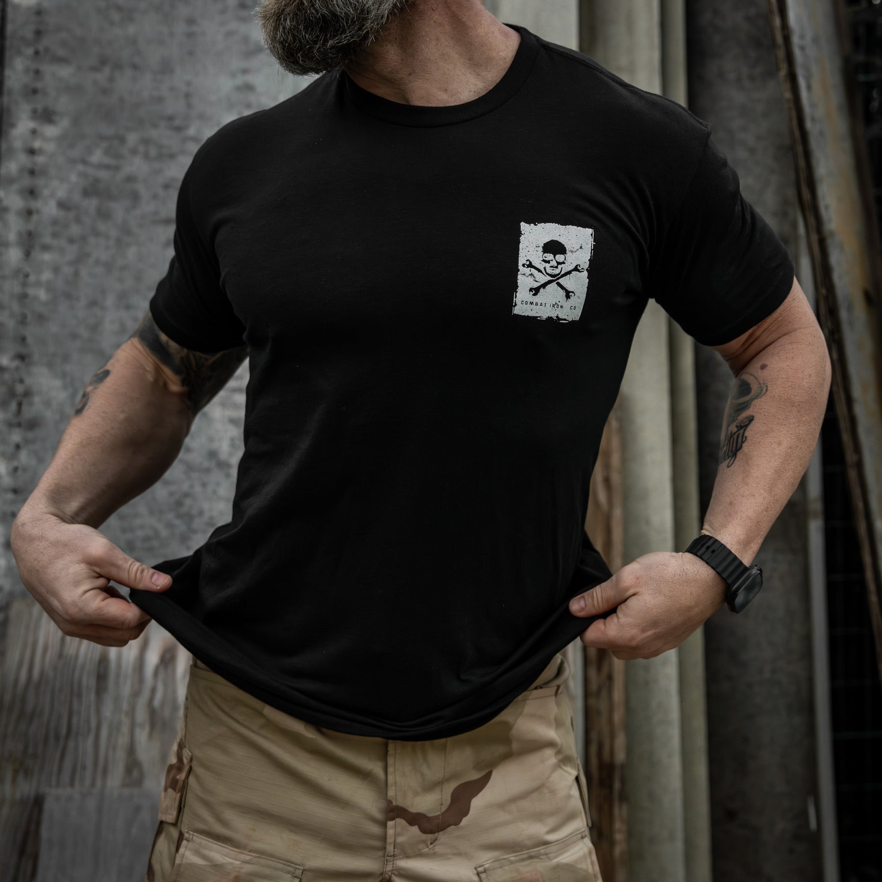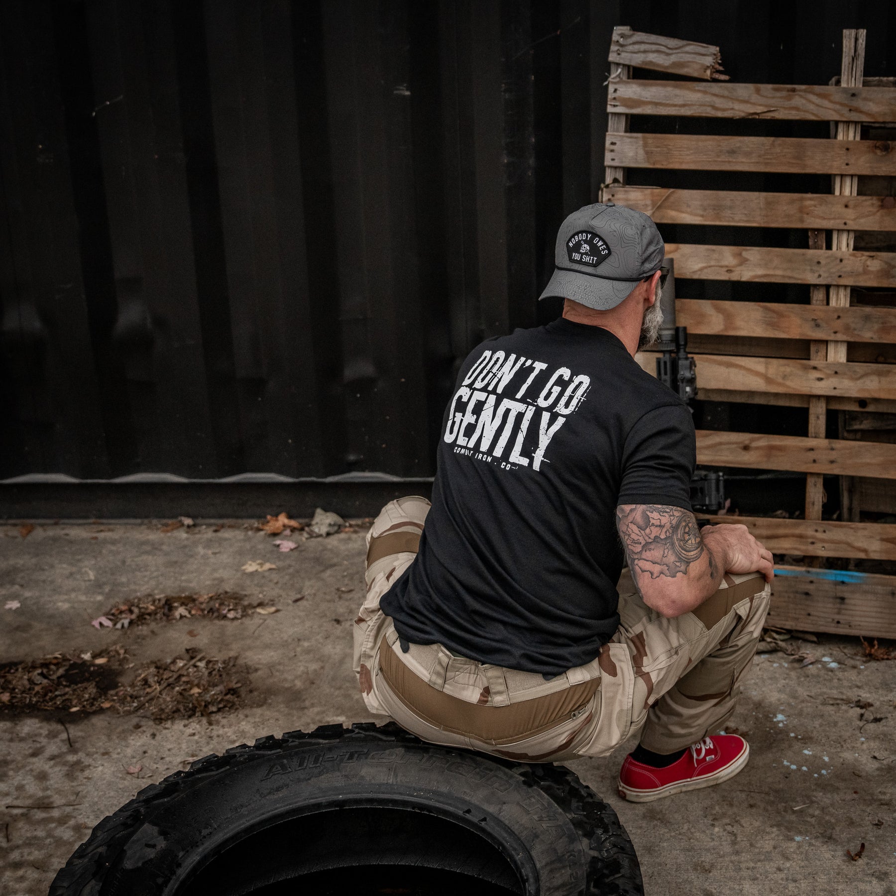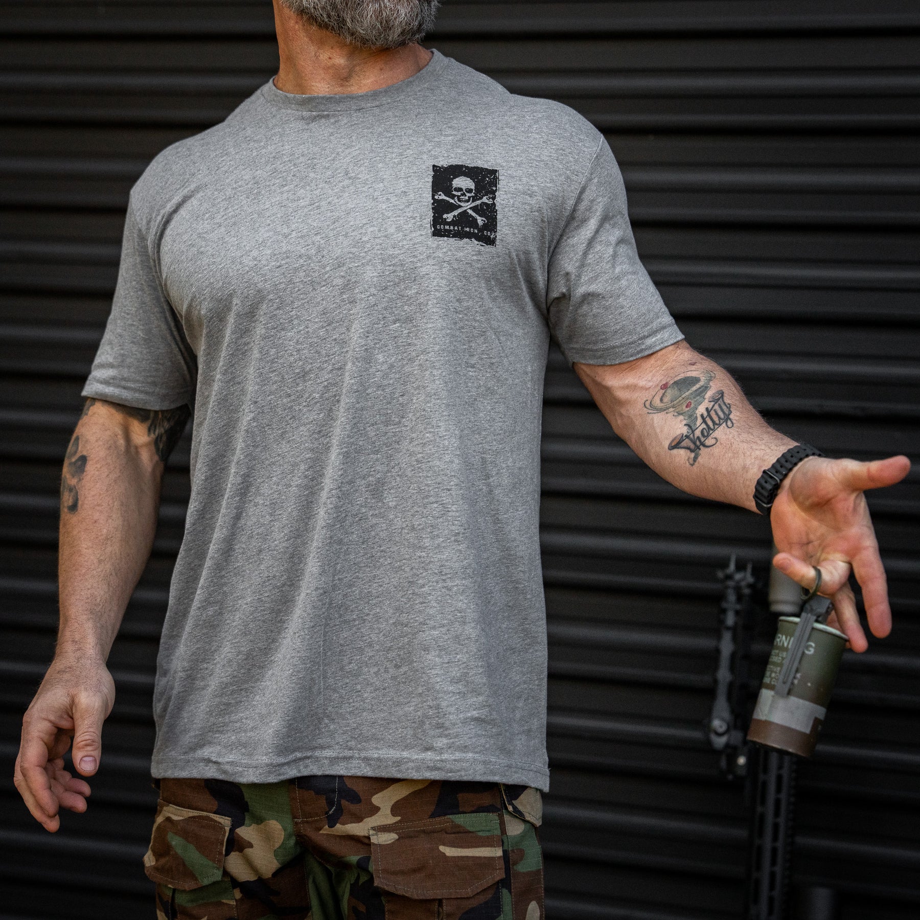 Our tees are made with a 60/40 cotton-poly blend — soft enough to feel broken-in from day one, but tough enough to stand up to real life.