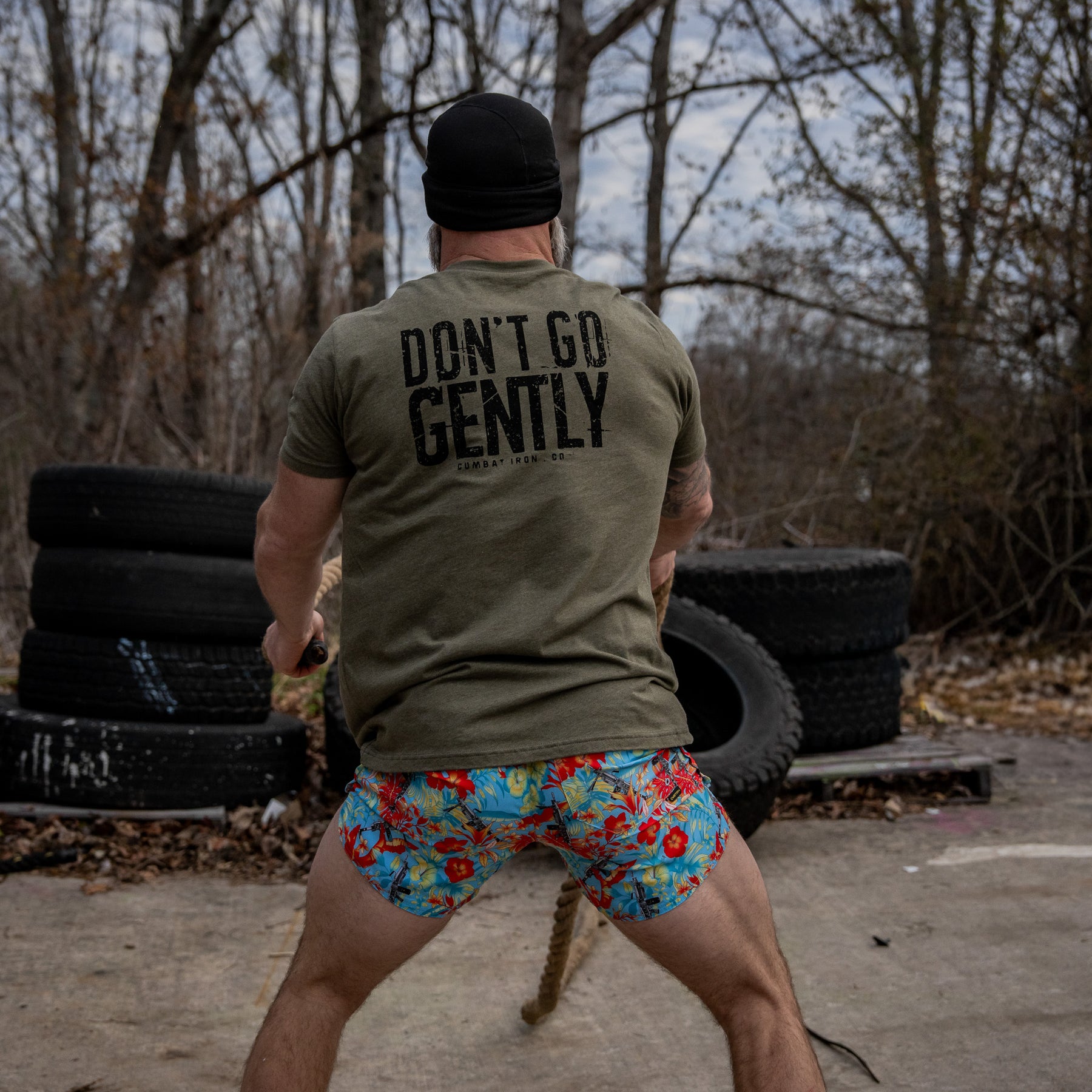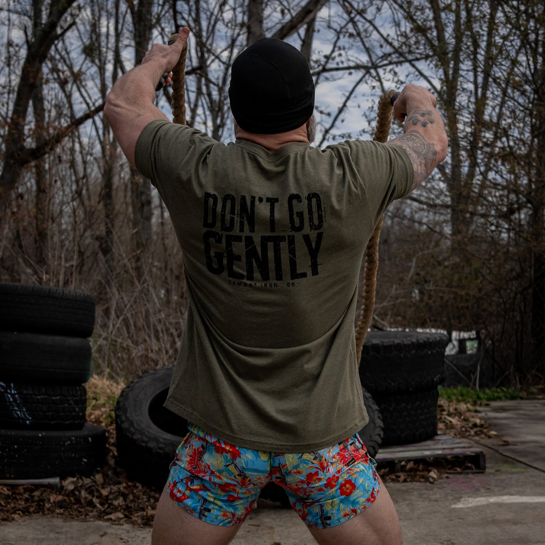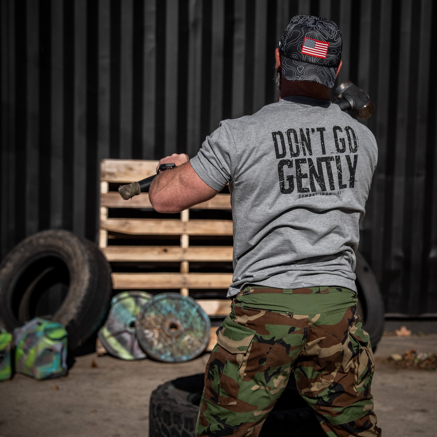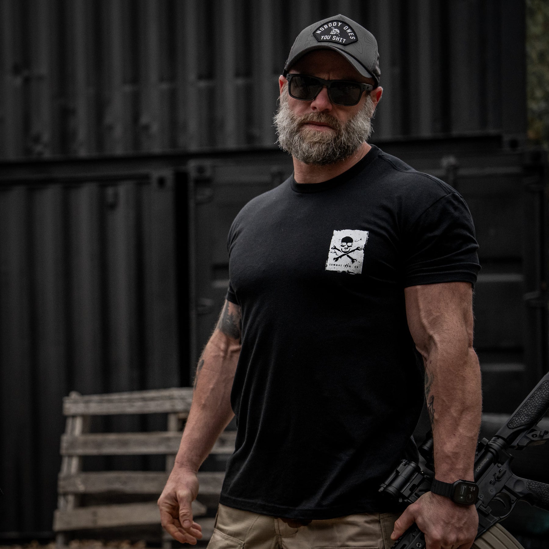 Our tees are made with a 60/40 cotton-poly blend — soft enough to feel broken-in from day one, but tough enough to stand up to real life.