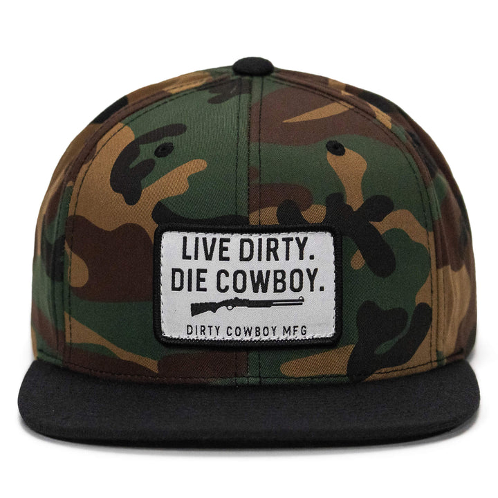 Live Dirty. Die Cowboy. Flatbill SnapBack