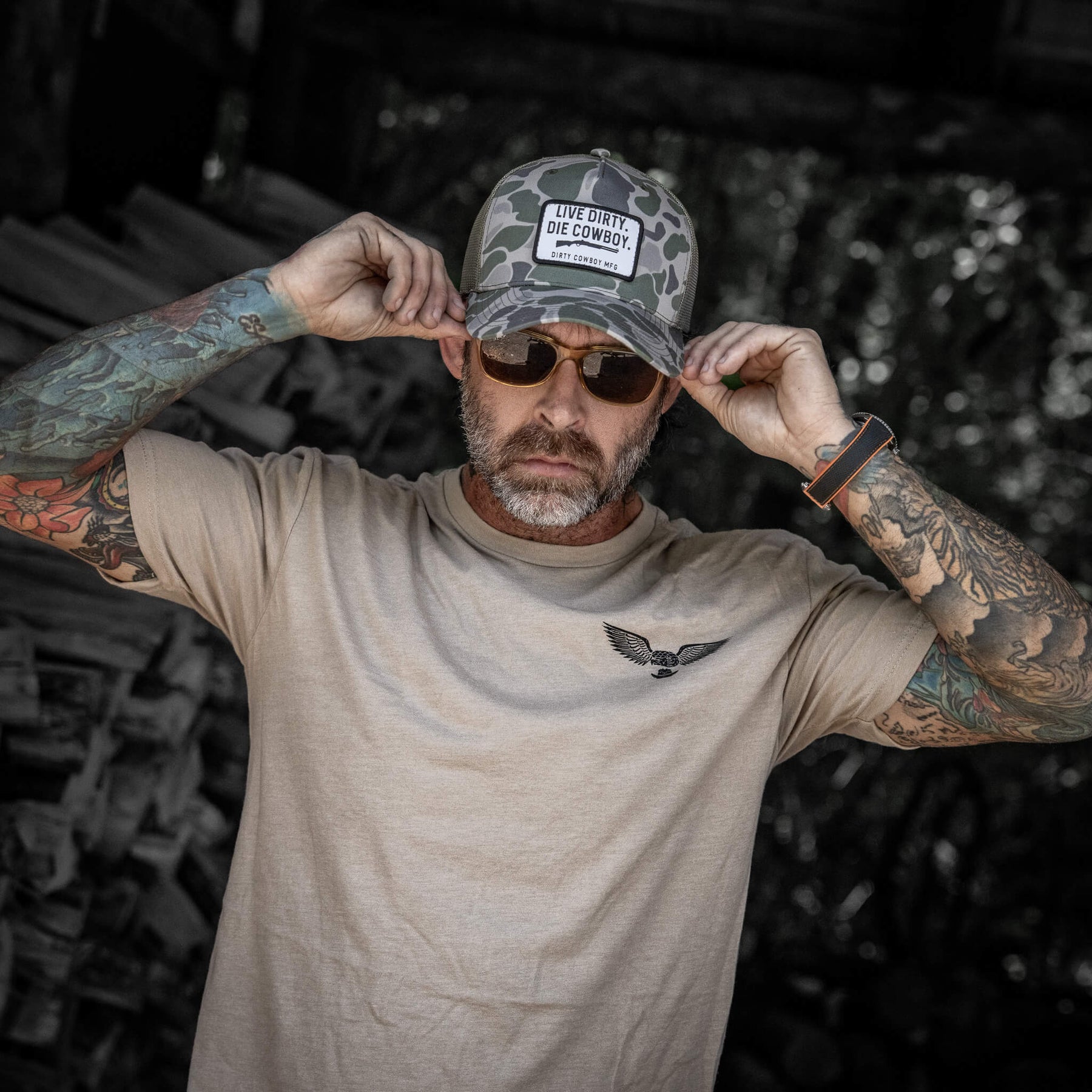 A pre-curved visor maintains shape from the first wear. The adjustable snapback closure locks in a secure fit, and reinforced stitching delivers lasting durability. Each hat is finished with in-house, hand sewn patches.