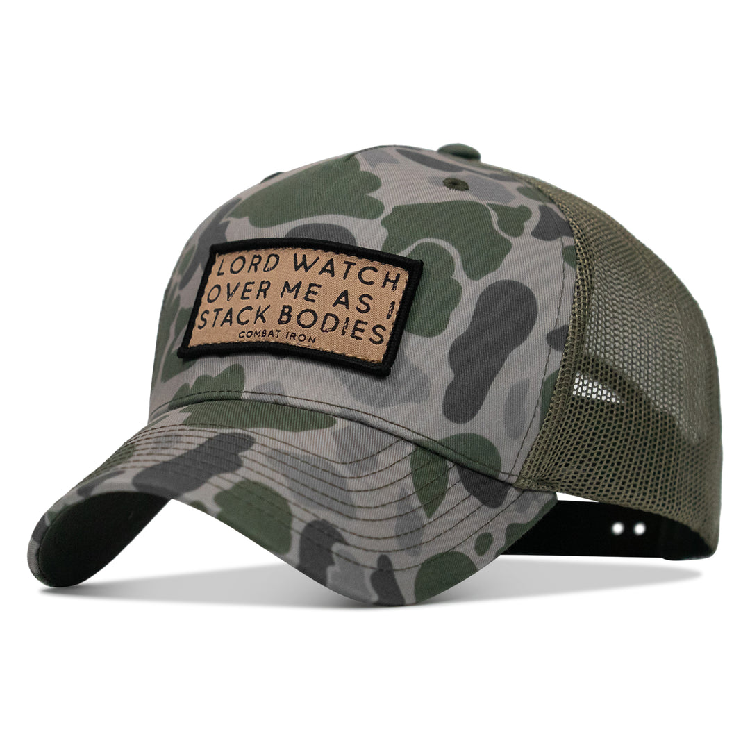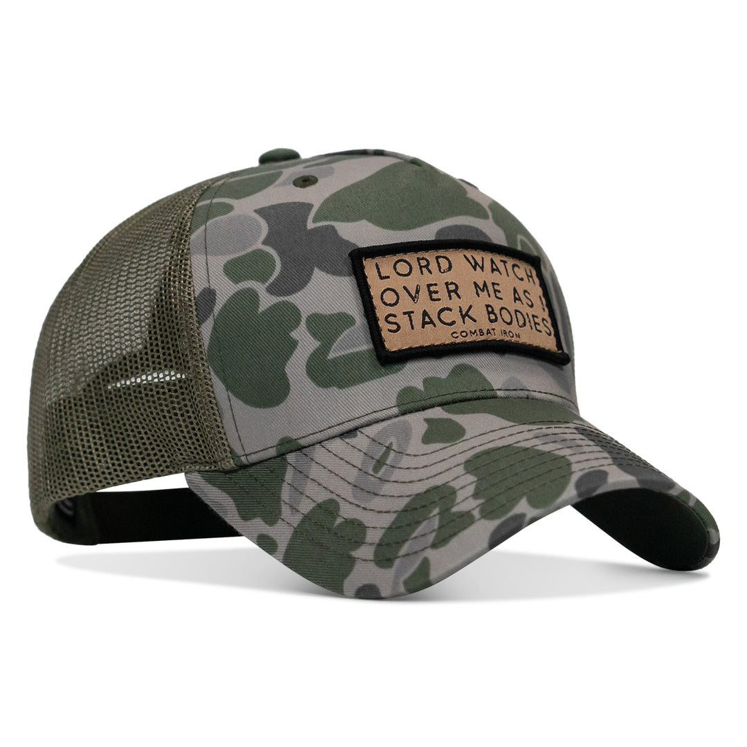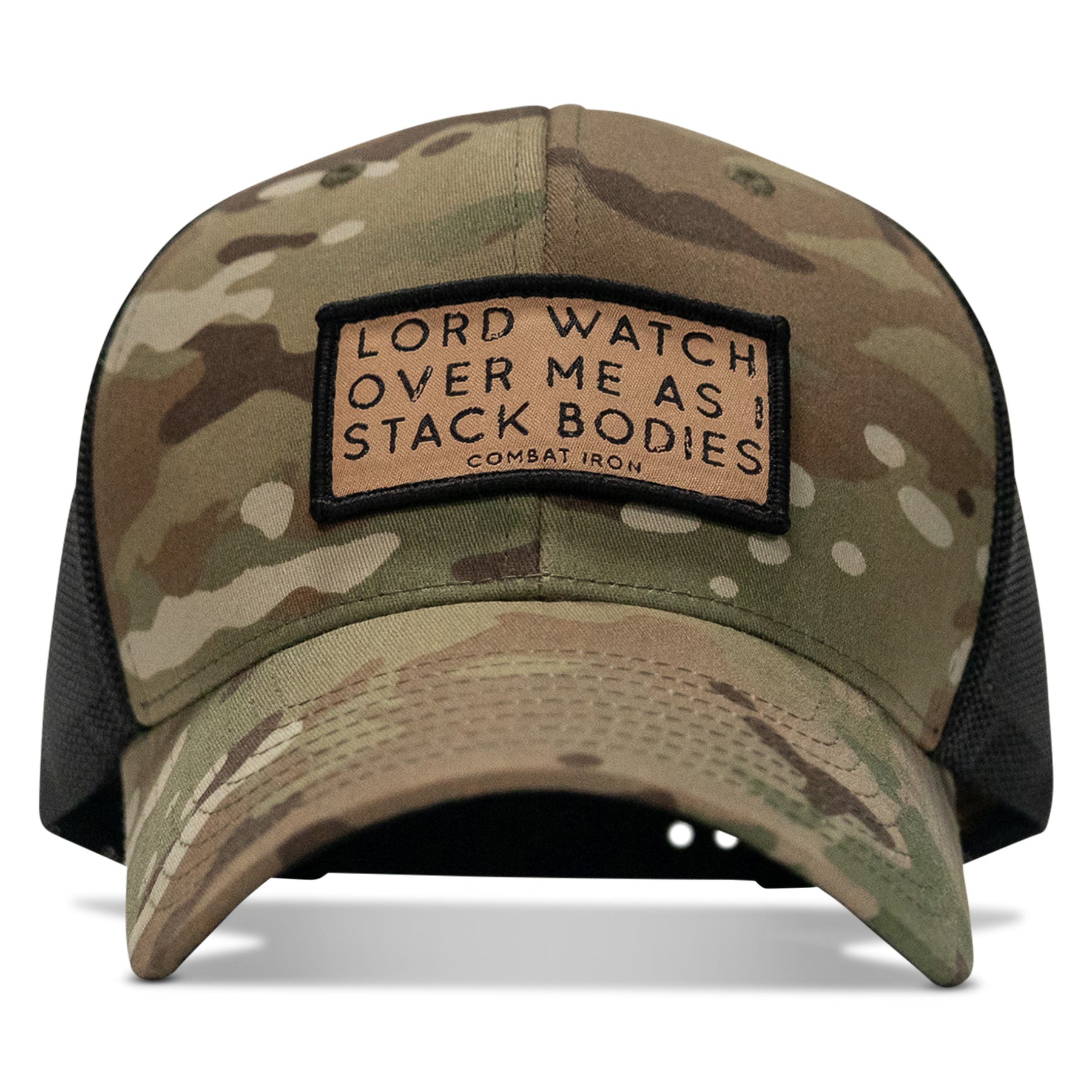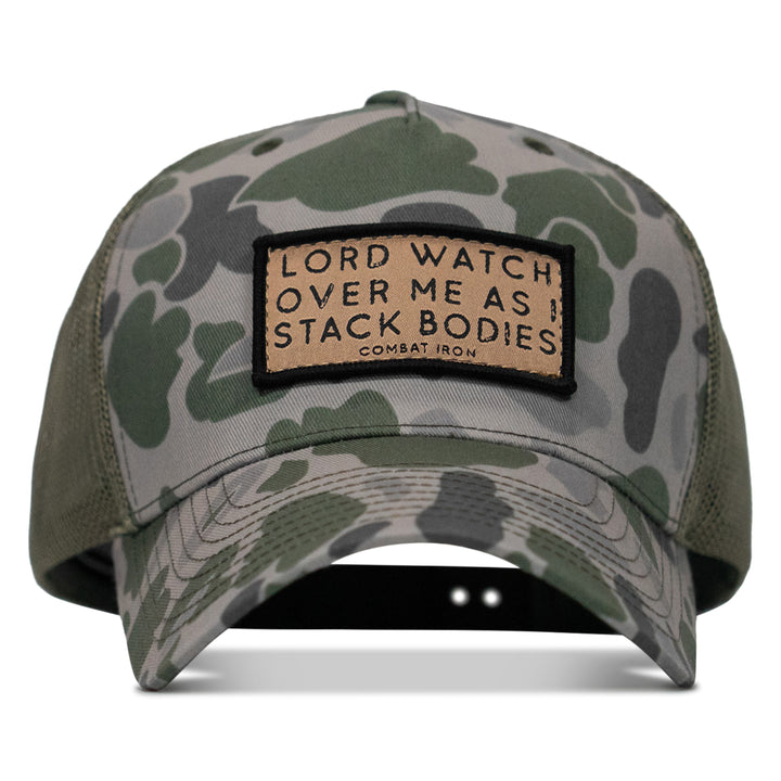 Lord Watch Over Me As I Stack Bodies Tan Patch Snapback Hat