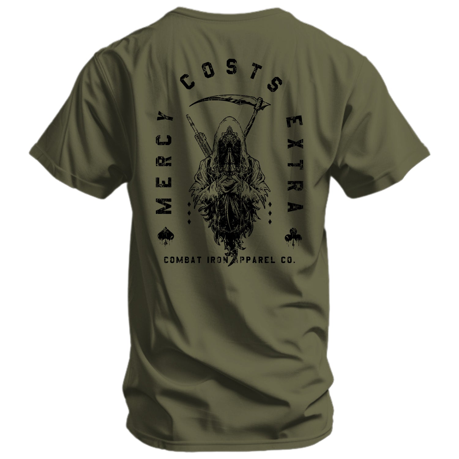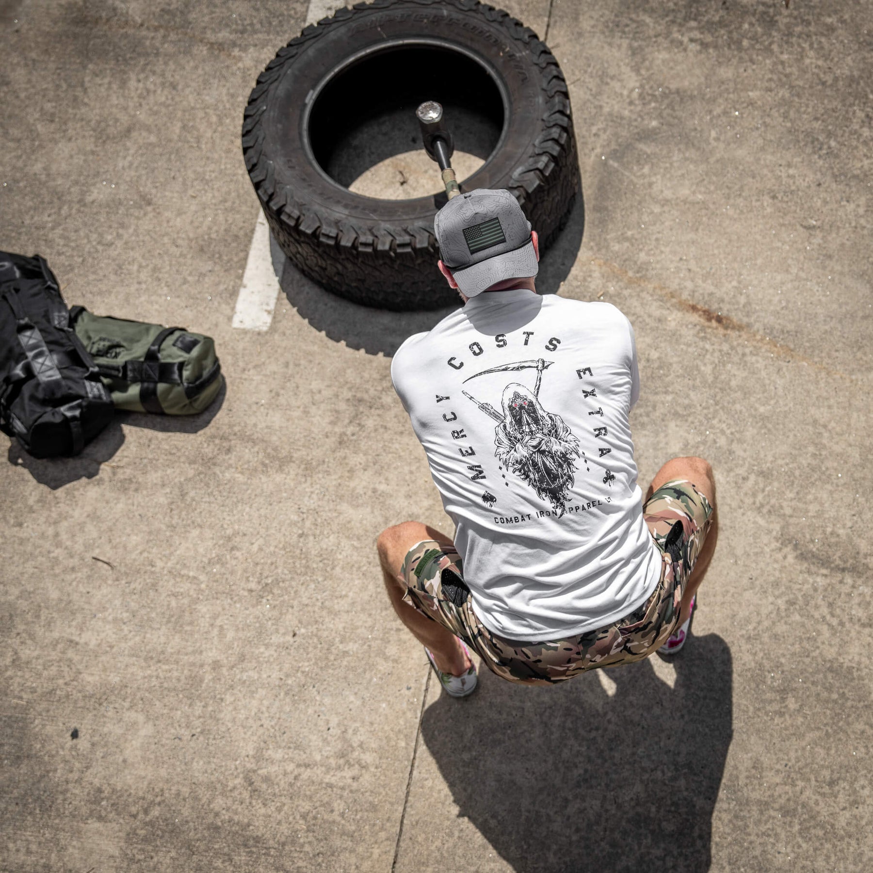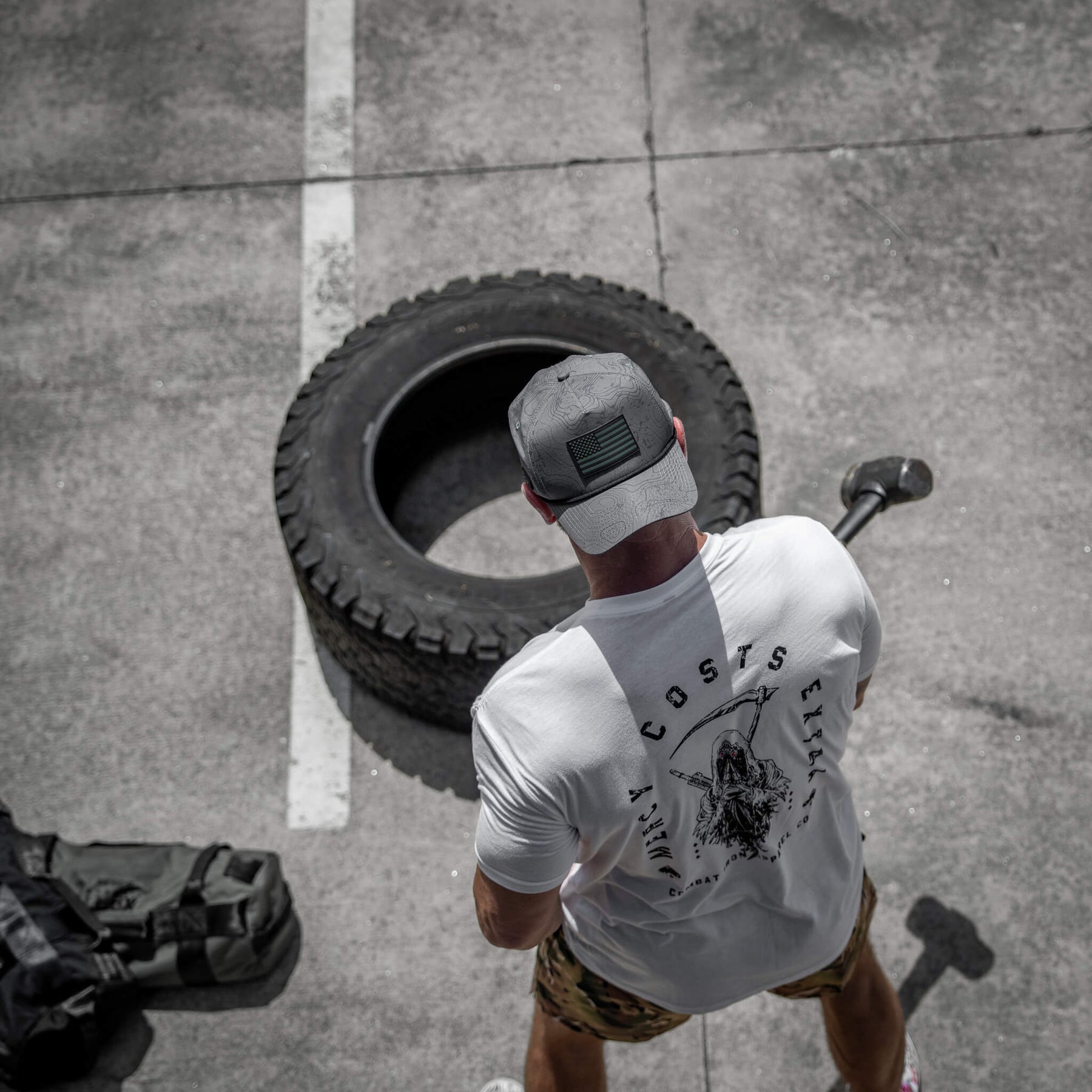 Our tees are made with a 60/40 cotton-poly blend — soft enough to feel broken-in from day one, but tough enough to stand up to real life.