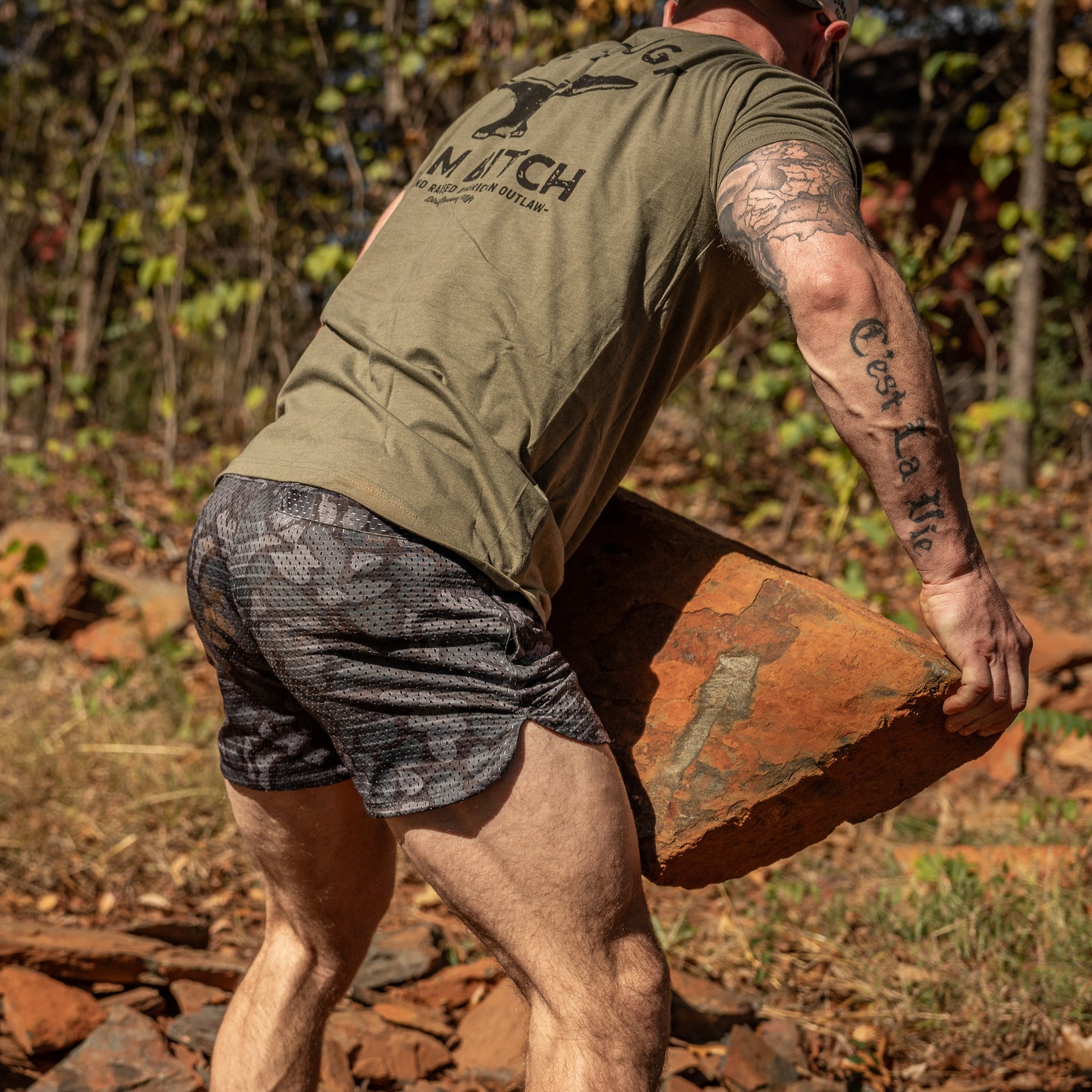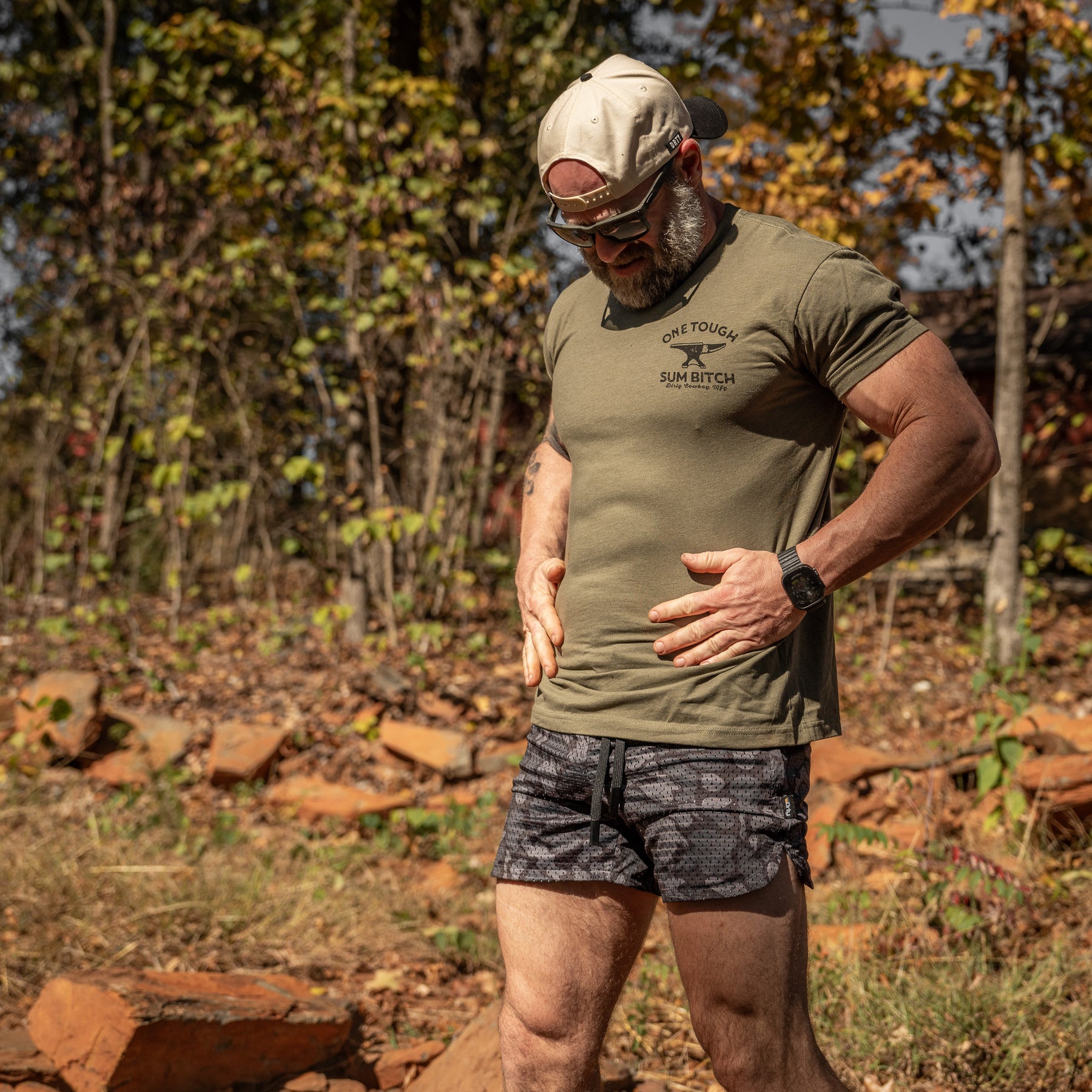 Your upgraded modern go-to tee for training, operating, traveling, and everything in between. Engineered from a soft spun pre-laundered 60/40 cotton-poly blend, this shirt delivers a broken-in feel from day one and keeps its athletic shape wear after wear.