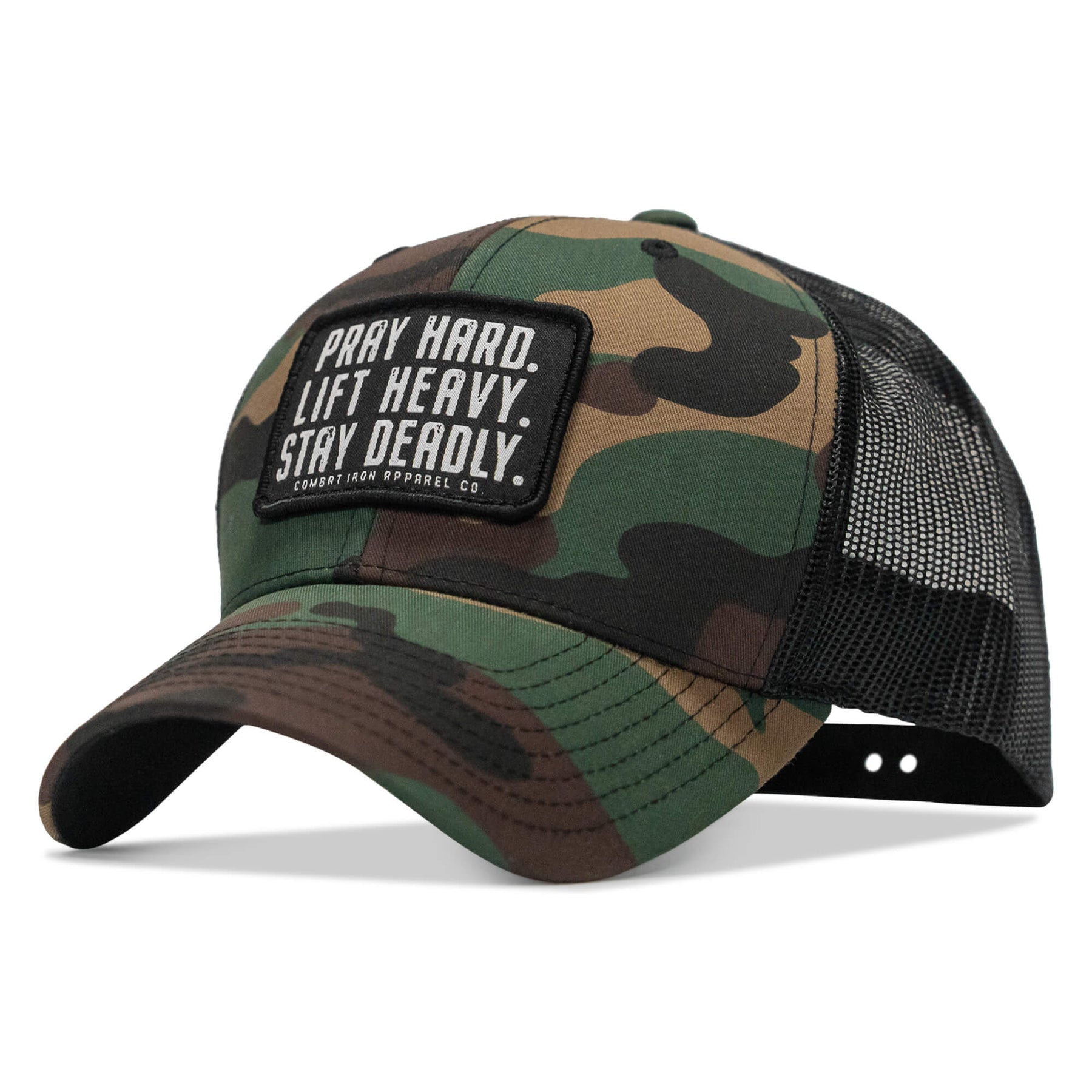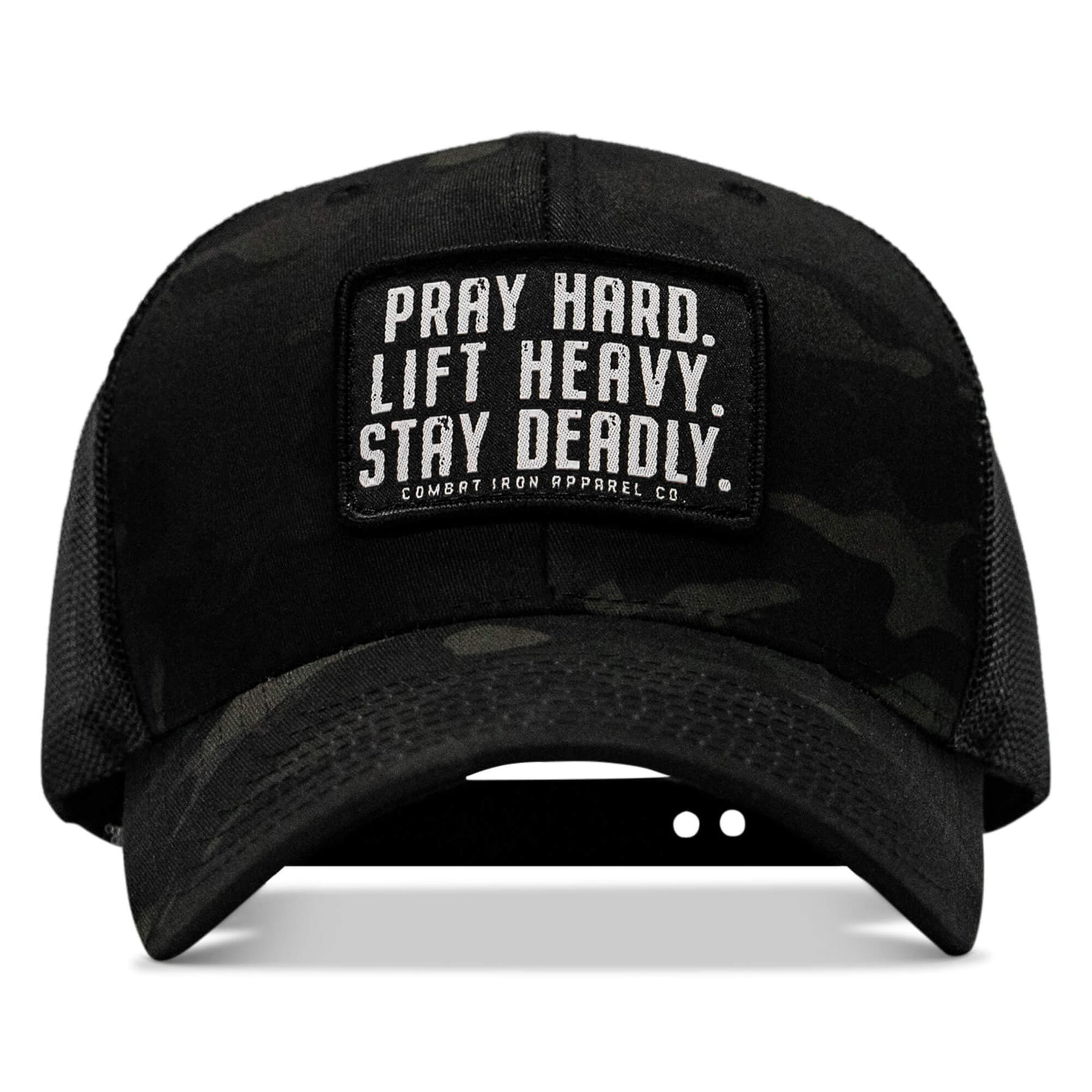 Pray Hard. Lift Heavy. Stay Deadly. Patch Snapback