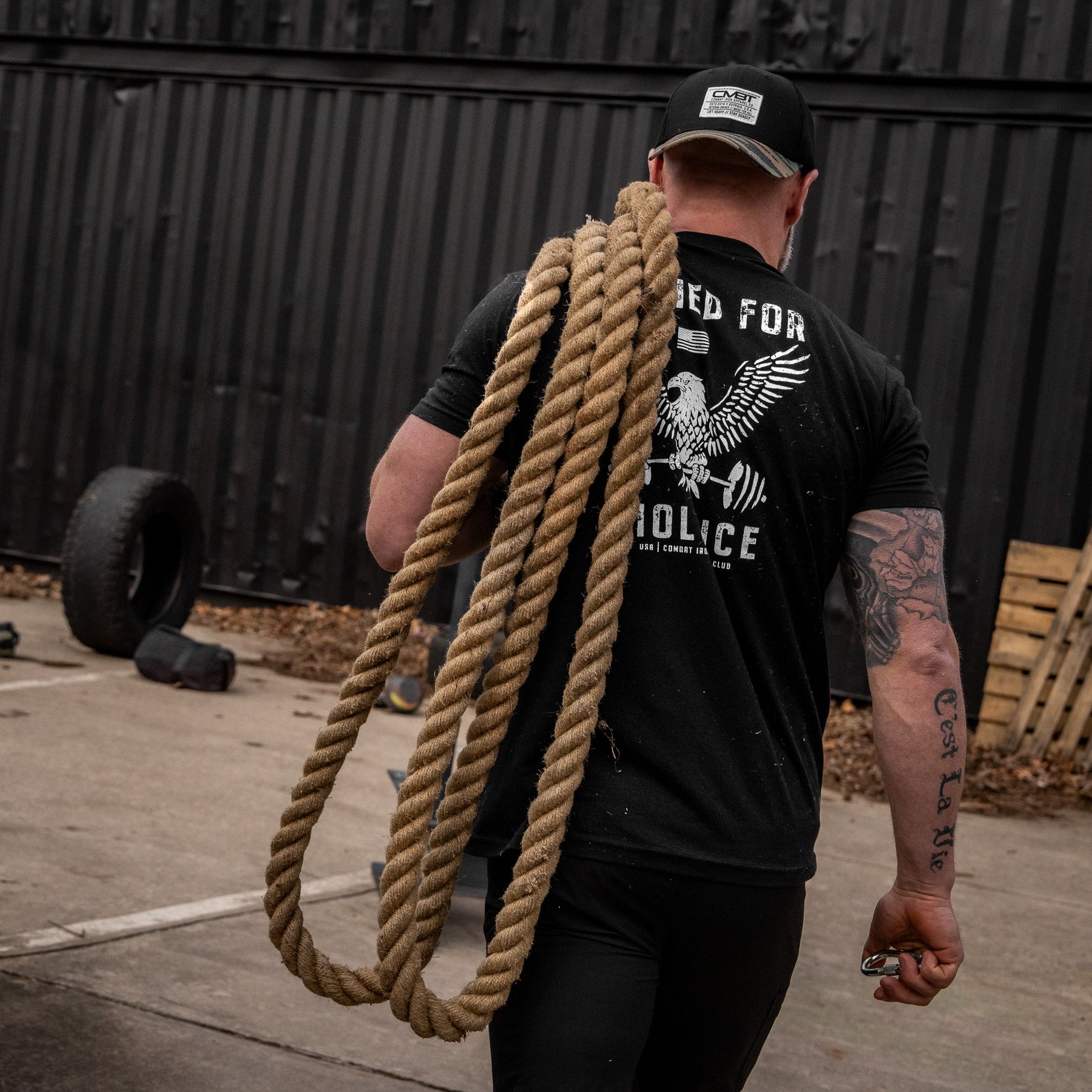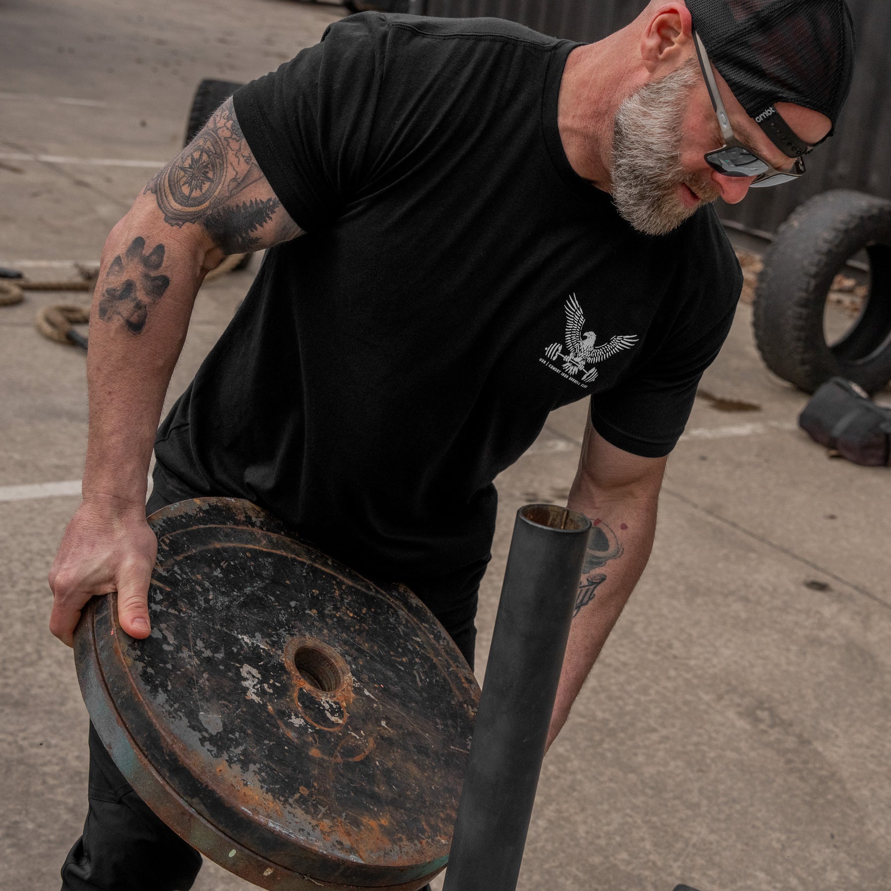 Our tees are made with a 60/40 cotton-poly blend — soft enough to feel broken-in from day one, but tough enough to stand up to real life.