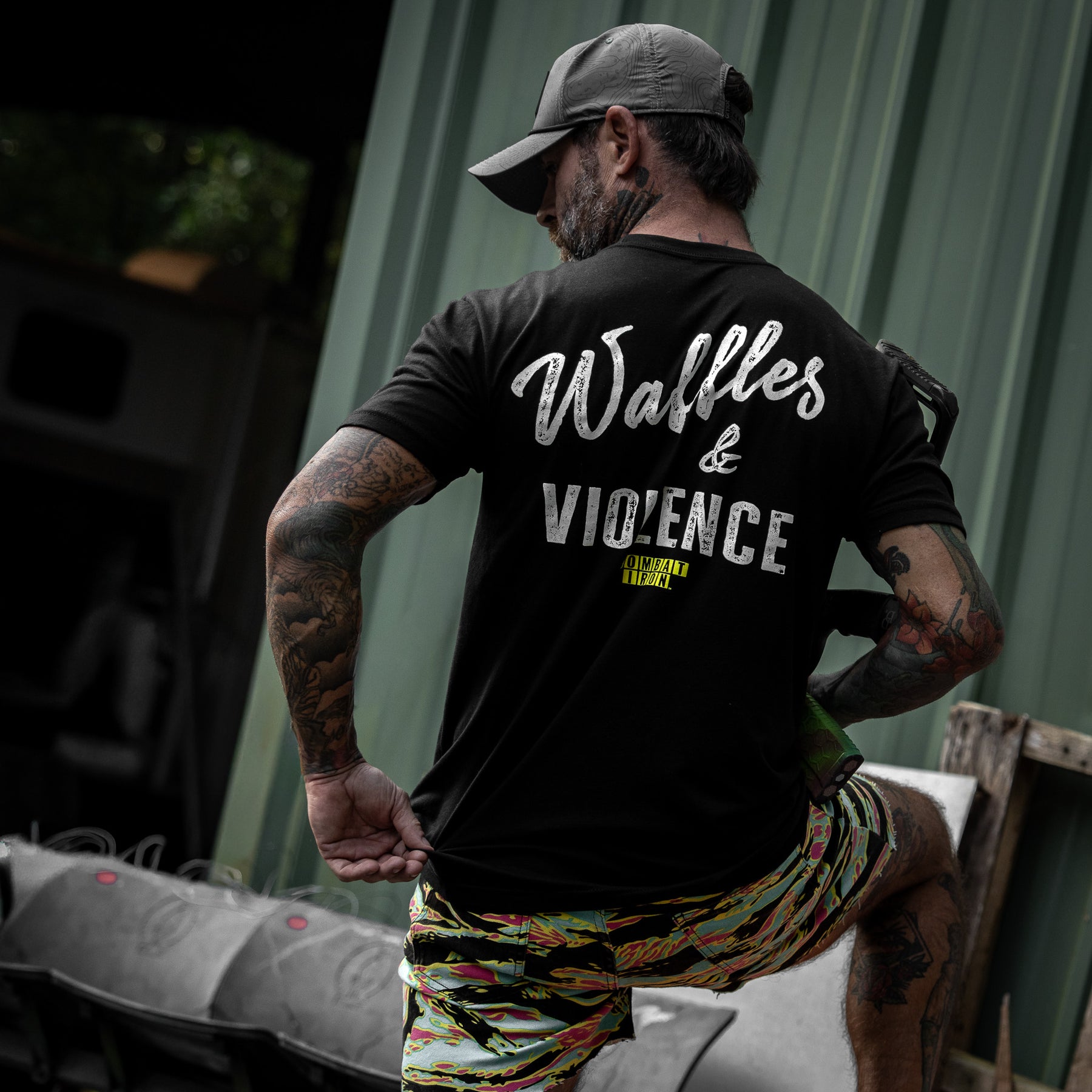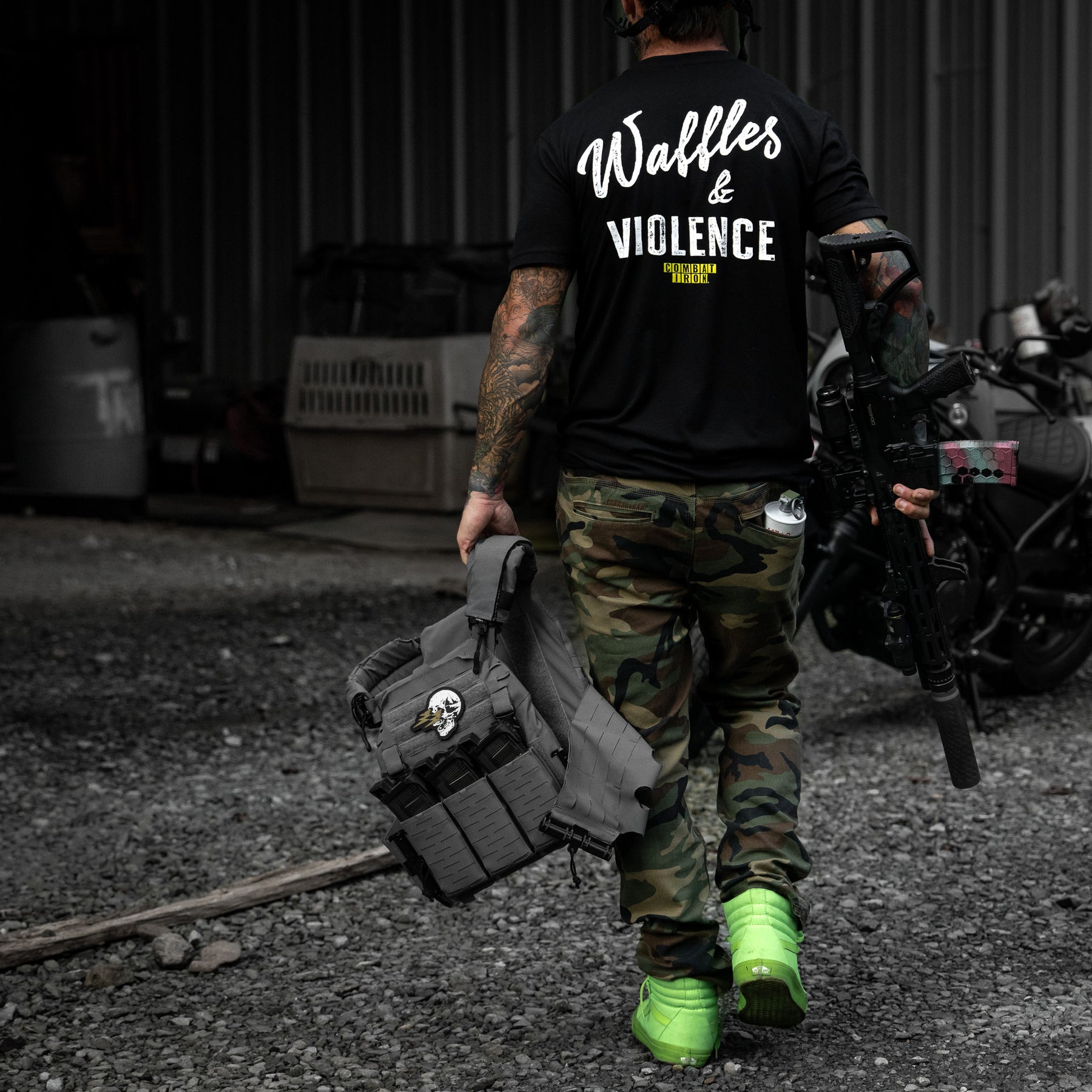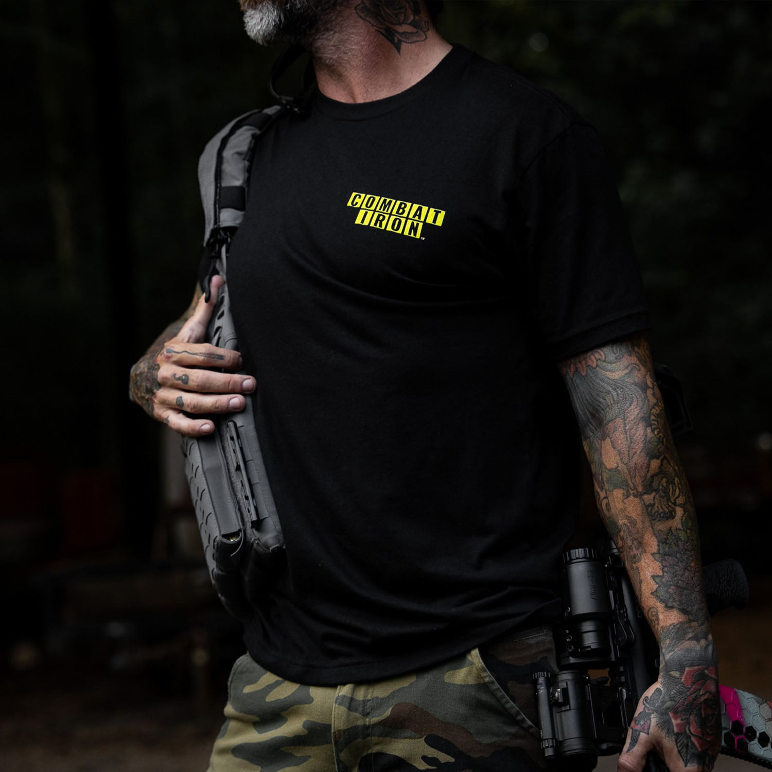 Our tees are made with a 60/40 cotton-poly blend — soft enough to feel broken-in from day one, but tough enough to stand up to real life.