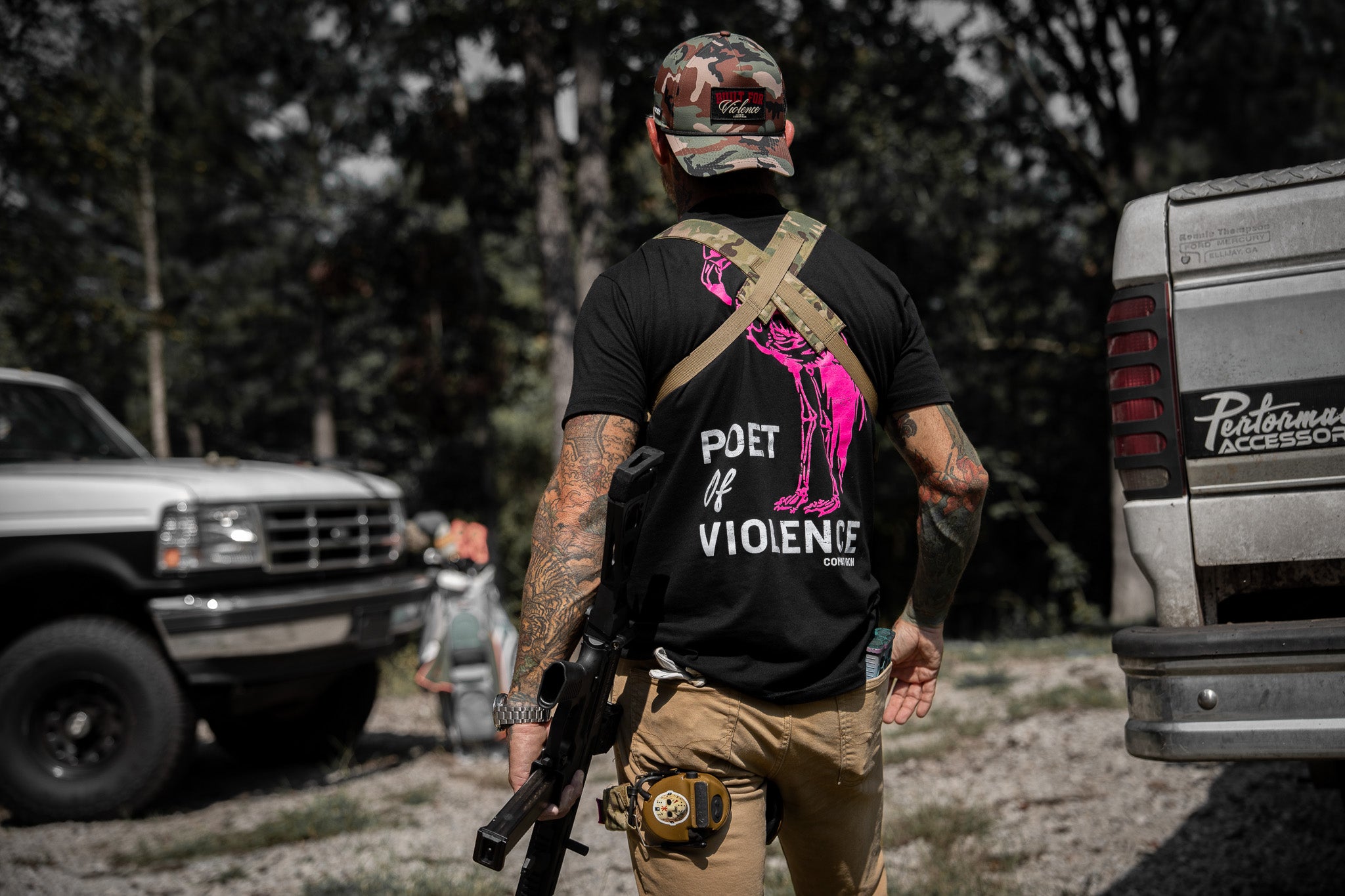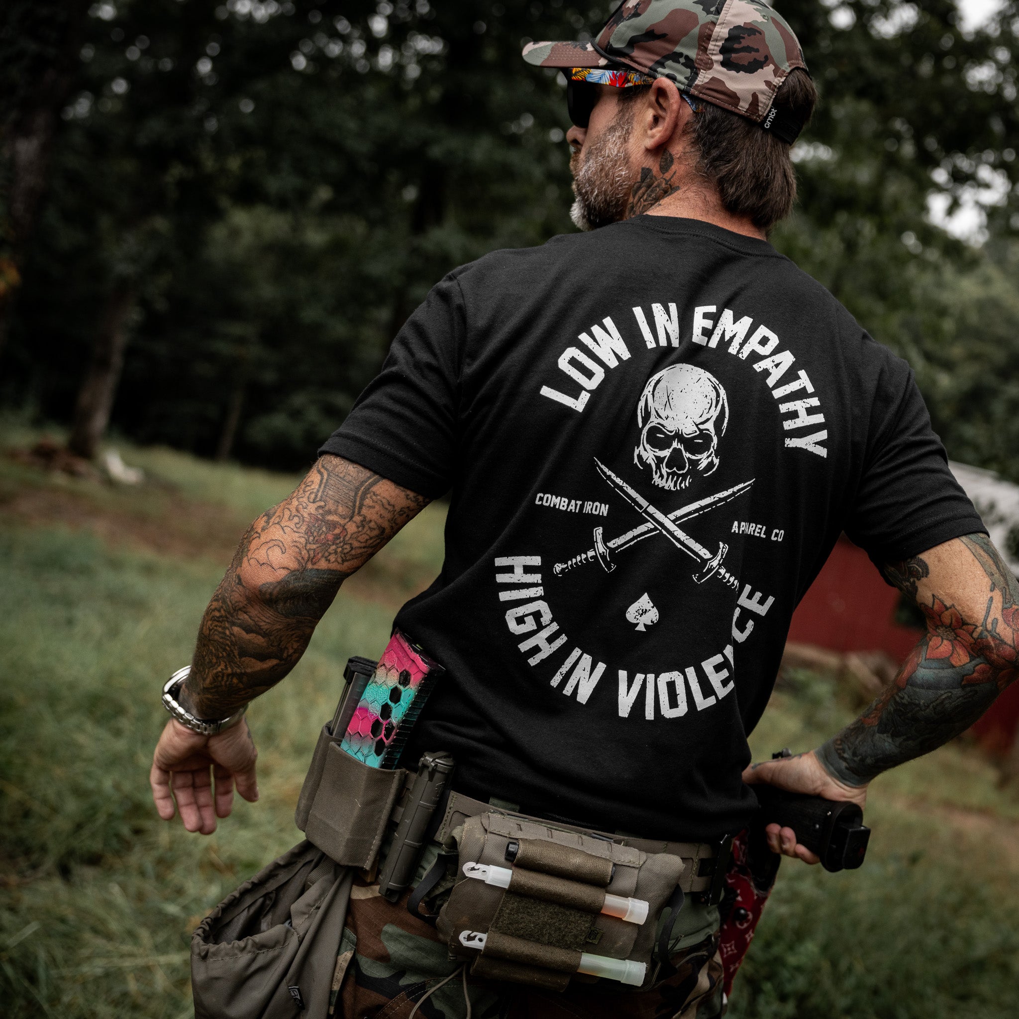 Our tees are made with a 60/40 cotton-poly blend — soft enough to feel broken-in from day one, but tough enough to stand up to real life.